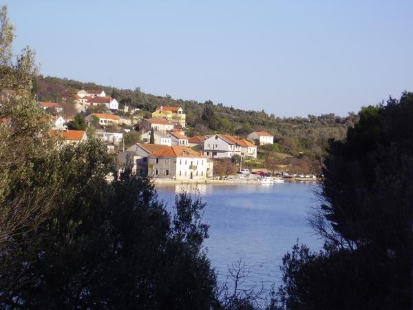 The apartments are located in a quiet village Luka on Long Island. They consist of two bedrooms (double bed in one, in another room, two single beds and an extra bed or crib), bathroom, hall and kitchen with beautiful view to the sea and the center. The kitchen has a gas cooker, oven and large fridge freezer. Outside is a large grassy courtyard and parking among old olive trees that make the atmosphere more special and also create shade for cars. In front of the house in an olive grove is a large table in the shade and barbecue which are given away for free usage. The distance from the beach is about 10 meters, and from the center 300 meters along the seaside promenade walkway. The beach is concrete, while in the sea there is gravel and sand, ideal for children. The house is on a less busy place without the crowds. Nearby there is a restaurant and tavern with excellent food in comfortable surroundings..