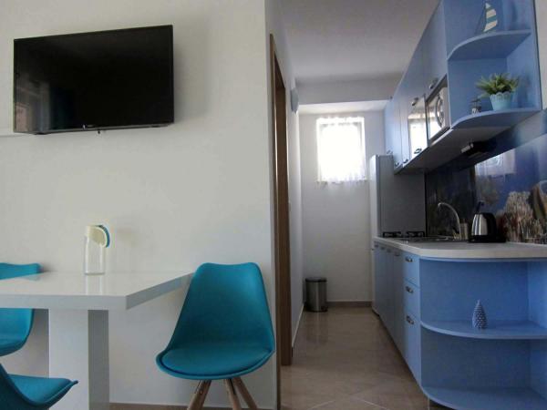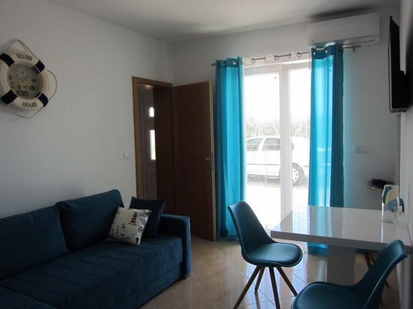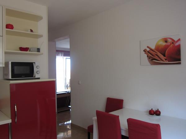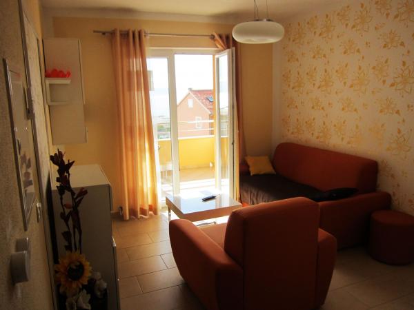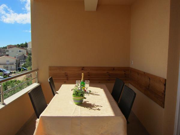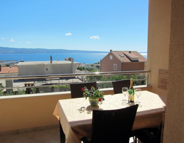 Apartments Rejo are situated in a small town of Dugi Rat, in a peaceful surroundings with beautiful panoramic view over the sea and island Brac. All tourist facilities are less than 400m away from the house. There are 2 apartments for rent. Each apartment is suitable for 4 persons, preferably 2 adults and 2 children. Both apartment are placed at the 1st floor of the house. Each of them with 1 double bedroom and 2 extra beds (pull out sofa) in the living room, a kitchen, a bathrooms and a balcony with a sea view.