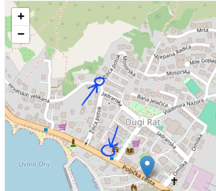 Apartment 5pp is located in the center of Dugi Rat, first row to the sea. You just need to cross the road and through a small park you reach the central, large, pebble beach. Next to the beach there is a 3 km long promenade, suitable for pleasant walks where you can enjoy evening walks. All important facilities for your pleasant stay are located within 100m of the apartment: two large supermarkets, bakery, fruit shop, fish shop, post office, ATM, pharmacy, dentist, clinic, several cafes, pizzeria and restaurant. Free parking is available in front of the apartment. Apartments Studio 1 and 2 are only 100 meters away from the sea. In addition to the apartment, the use of the terrace and flower garden is also available. The grill is also at your disposal.