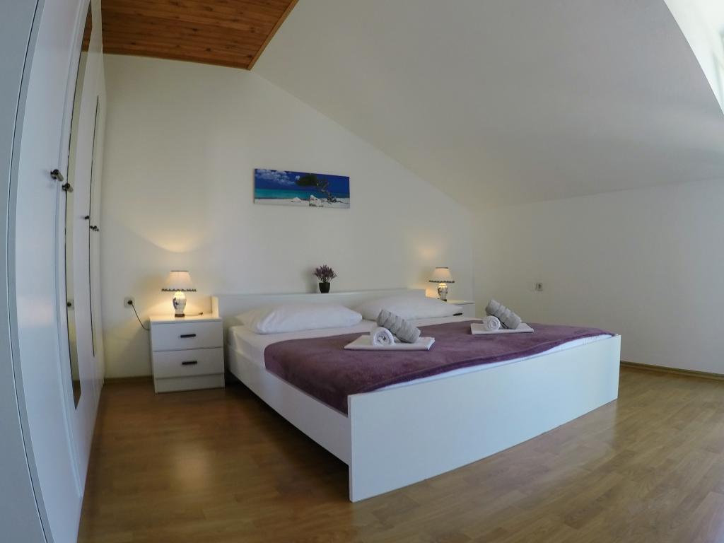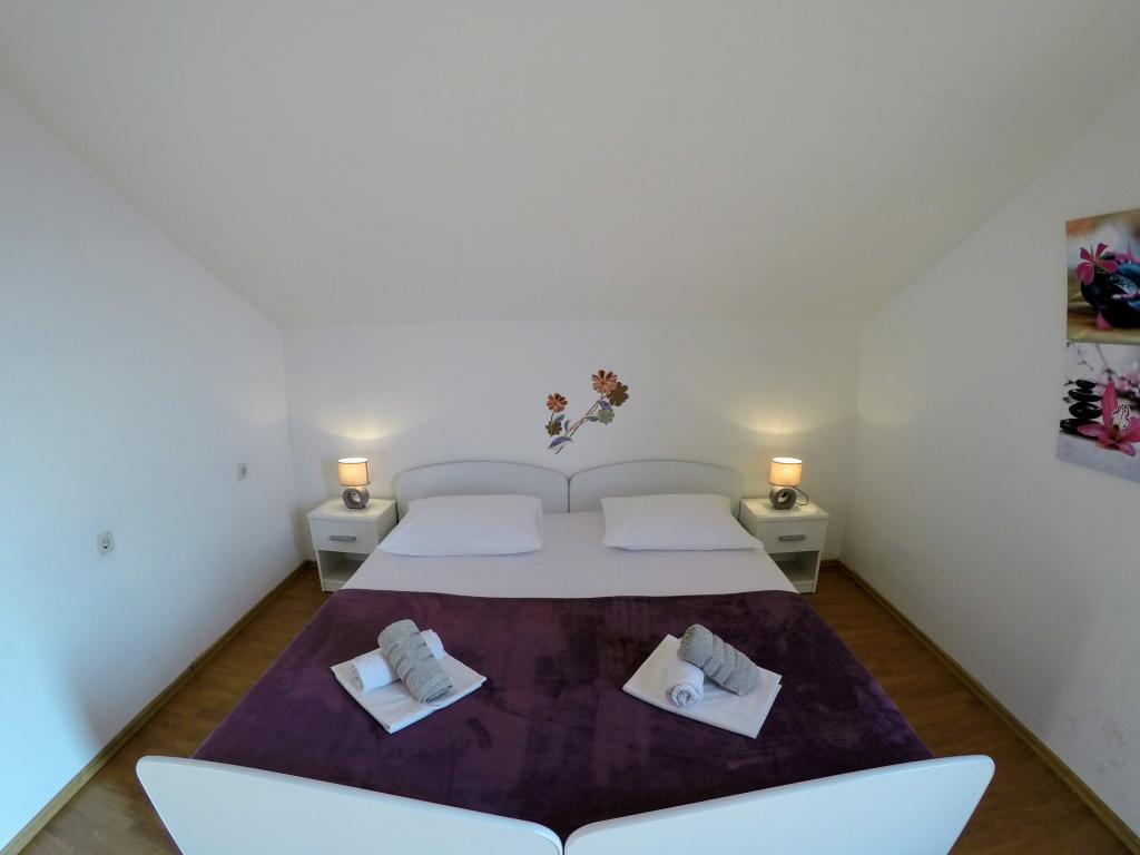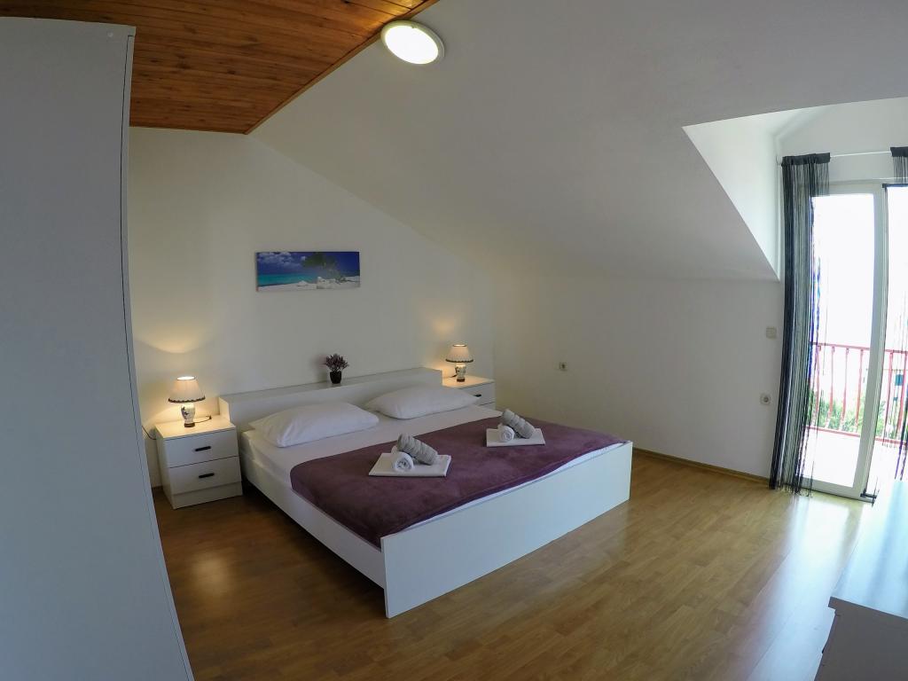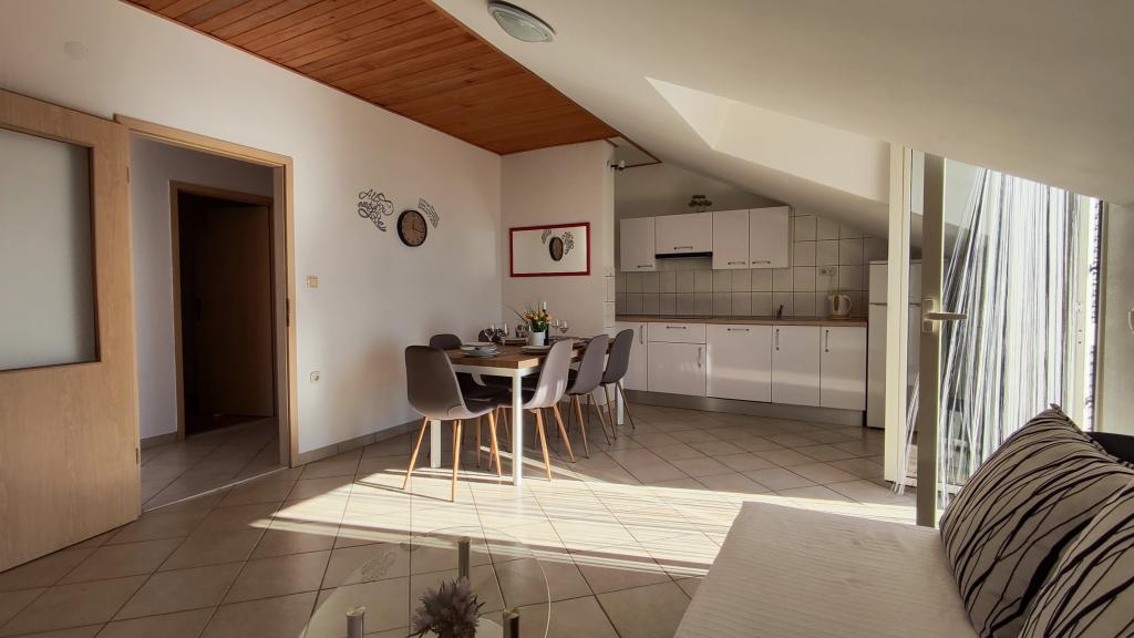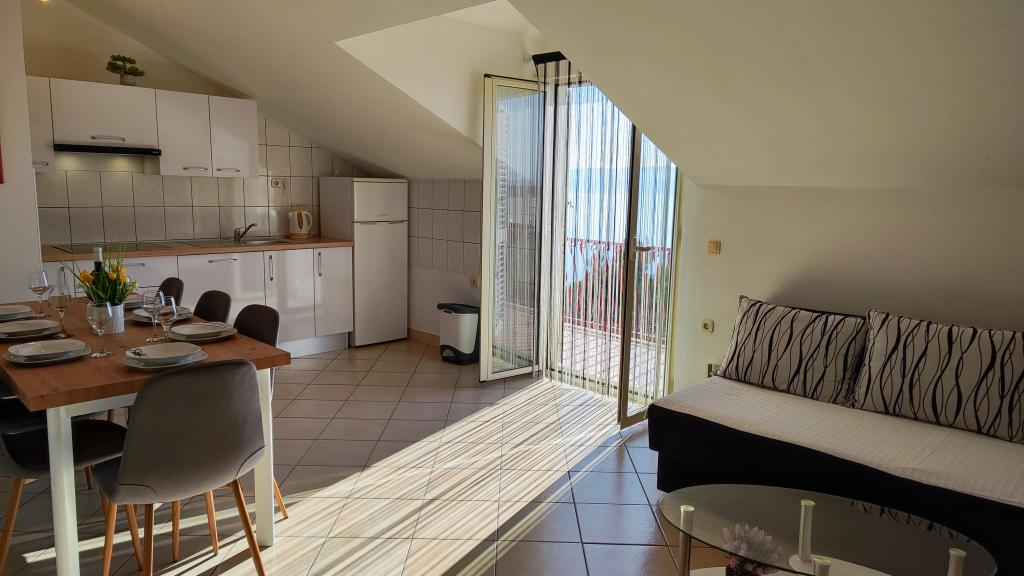 Apartment very good for a family with one child, very clean, sheets and towels replaced with clean after 7 days. Very well equipped kitchen, great terrace. The hosts very nice people. Children speak English hosts. No air-conditioning can be disruptive during a very warm night, because hot days and so spends the sea. The nearest beach is rocky, but good, convenient access to the promenade by the sea beach gravel - very good for children. City peaceful, which is not overcrowded beaches. A good starting point to visit Split, Trogir, Omis and Makarska Riviera - anywhere close.