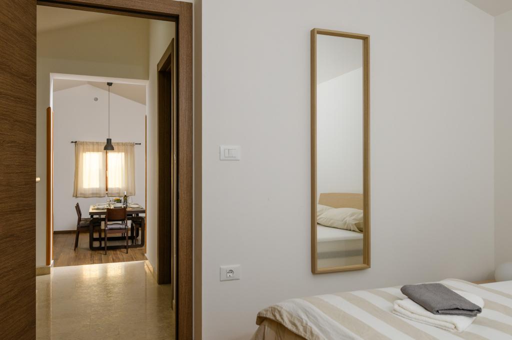 We spent a week in this apartment in three (two adults + a 9 year old girl) and we had a great time: the structure is new, with large and well-kept rooms, and is immersed in the countryside (what a beautiful silence!), but a few steps from the historic center of Fasana. The owners are very kind and helpful, always ready to help and never intrusive. Excellent experience!