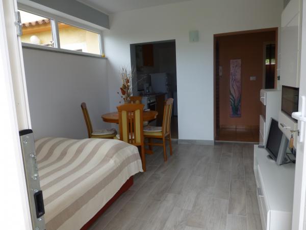 The facility is located a 10-minute walk from the beach. Fully equipped and located in a quiet area of the small Istrian town of Fažana, opposite the Brijuni islands. The apartment is on the ground floor of a family house with parking.