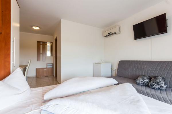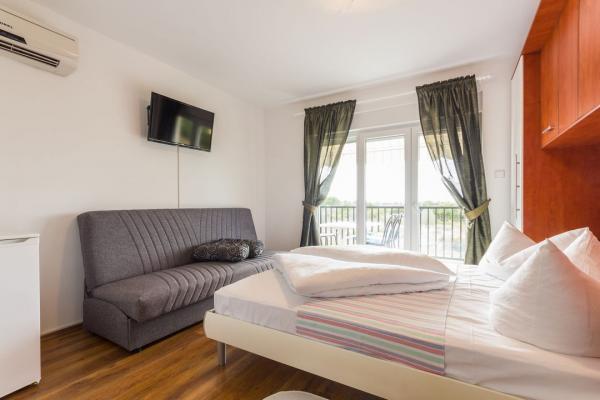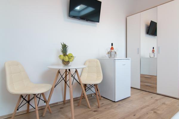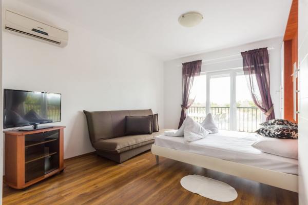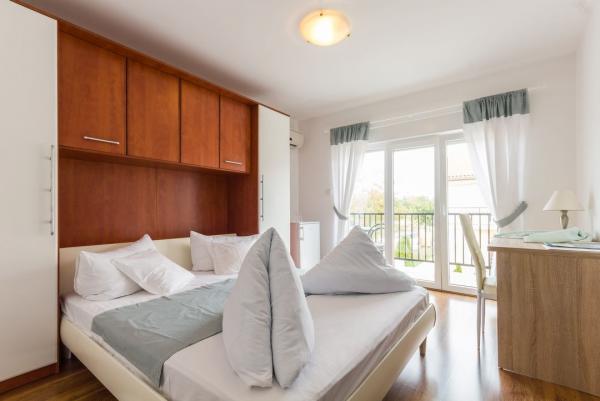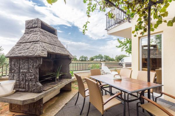 Fully equipped and modern apartments and rooms in a quiet place Valbadon which is only 1, 5km from the center of pheasants and 800-900 m from the beach. All rooms have air conditioning, Wi-Fi, a balcony and a garden with deck chairs and a barbecue which is available to guests. Of course there is also free parking for guests. Closest store is about 100 meters and the restaurant is right across the street. The city of Pula is 6 km away while the airport Pula 12 km. Brijuni are lying close to about 2 km and can be reached by boat from Fazana.