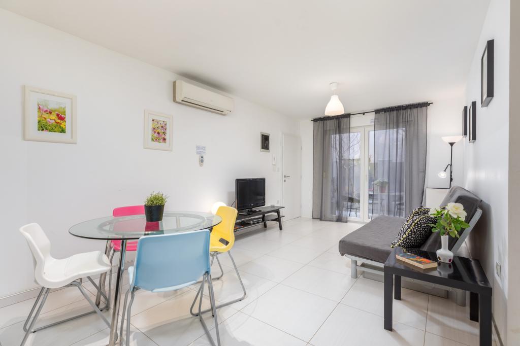 We stayed in a ground floor apartment with two small children. This is definitely the best accommodation we have ever stayed in, extremely clean and fully equipped (complete dishes and utensils in the kitchen, hand dishwashing detergent and for the washing machine, towels, etc.), including a cot and a baby feeder. The apartment is beautifully and thoughtfully decorated, with a large terrace. The owners are extremely accommodating, helpful and willing to answer any questions. Sincere recommendations for this accommodation!