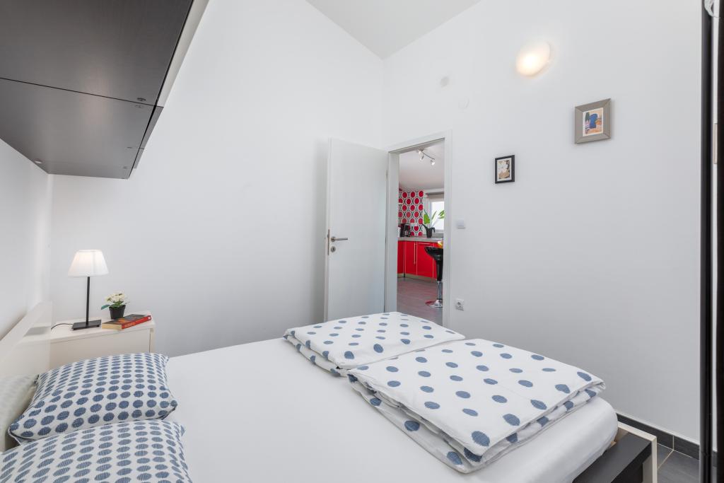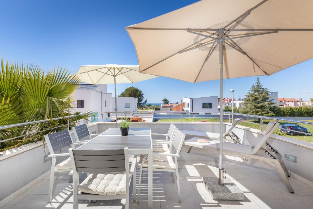We haven't been in such a beautiful, well-equipped, stylish apartment for a long time. At every turn, it can be seen that the owner has thought of all the little things that everyone needs to enjoy this apartment. Two air conditioners, all rooms have shutters, large cabinets and plenty of storage space. They even have a fire extinguisher. The bathroom has a quality shower and has an additional space heater. There were also quality towels. Kitchen, unique. A large set of quality containers and a large set of plates. Jars for every occasion and a large set of cutlery. Contains a dishwasher with dishwasher tablets. In short, the kitchen is as equipped as at home. On the terrace are all chairs, table, deck chairs and umbrellas in the same style. The apartment is as beautiful as if it had been designed by a professional interior architect. The surroundings of the apartment are also very beautiful. Each apartment has an intercom. Warmly recommended to anyone who likes to live or sleep in a beautiful and clean apartment.