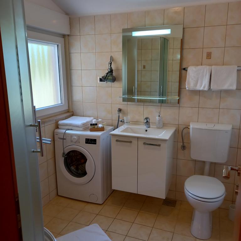 We stayed in apartment number 1. It is not far from the beach and the center of Fažana. The accommodation is brand new, there are: two bedrooms, a washing machine in the bathroom, air conditioning, induction hobs that are very easy and practical to use, a large table outside on the terrace, private parking well covered by the pergola. Mrs. Irena left us drinks in the fridge and all the bed linen and towels. Irena was very kind and hospitable, giving us advice and making herself available for anything. I highly recommend these accommodations!