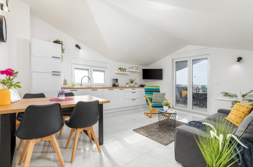 It was our first vacation in Croatia. We rate the accommodation at a very high level. The apartment is new, spacious, neat, clean and well equipped. Overlooking the sea and a beautiful sunset. The owners are very friendly and hospitable. The apartment is located in a quiet and peaceful area. The best recommendation is that we have already booked our next vacation in the same apartment.