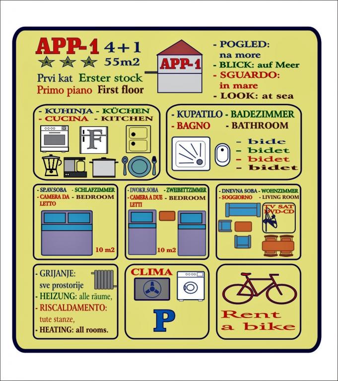 Fully equipped apartments in a quiet part of town, located 200 meters from the sea and 5 minutes walk to the center of Fazana.