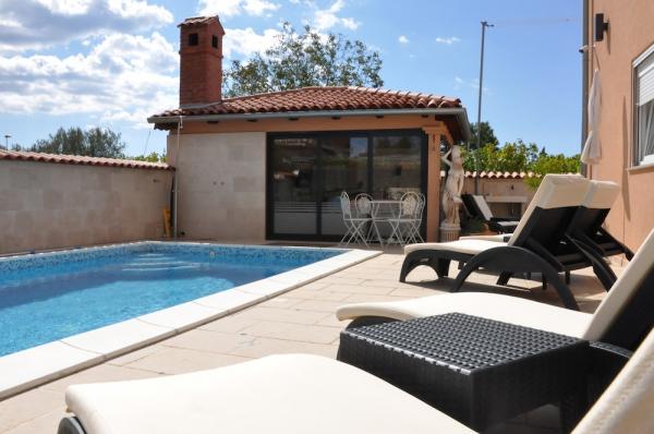 In Fažana, a picturesque fishing village surrounded by beaches, the beautiful Brijuni Archipelago, aromatic pinewoods and ancient olive trees, there is Villa Mihaela, your ideal vacation place and a starting point in discovering this beautiful area. Villa Mihaela is a family house that offers 5 comfortable apartments for two or four people with a common pool area. Each apartment has a separate entrance, parking, air conditioning, satellite TV, equipped kitchen and other facilities necessary for a pleasant stay. The house is located in a quiet part of Fažana, close to the sea, but also near to the famous restaurants and konobas, perfectly blending relaxation with a fun vacation. Nearby, there are also many other summer attractions, such as beach volleyball, diving, surfing, parasailing, while the emphasis is on MTB cycling- the Vasianum or 12 km long bike route which introduces you to the beautiful coast, olive groves and evergreen forests with a unique view of the Brijuni Islands