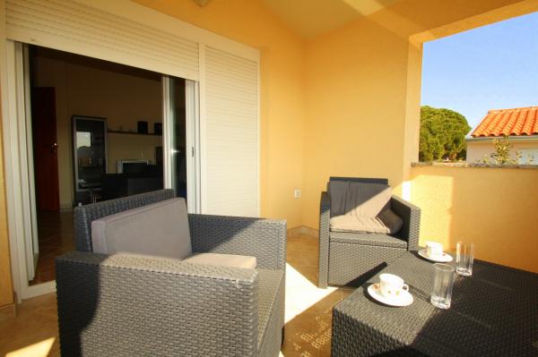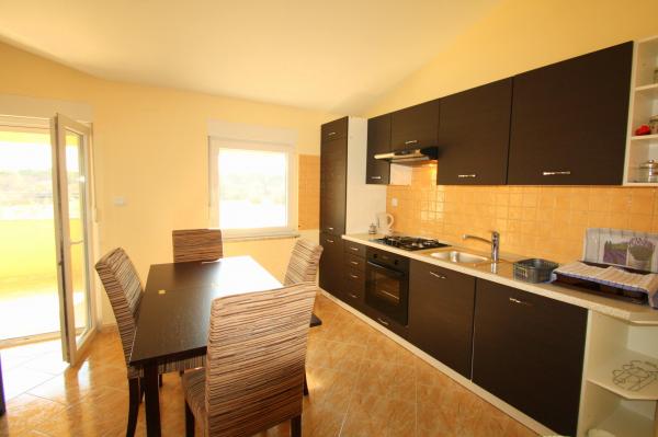 Modern and fully equipped apartment 300 meters from the beach Conditioned It consists of two spsvaće, living room (sofa bed with two beds), bathroom, terrace. Parking and grill The beach is less than 300 meters, a restaurant, coffee bar, children's playground and shop, showers and plenty of shade. Ula zu water is shallow and suitable for children The apartment is modern, comfortable and fully equipped.