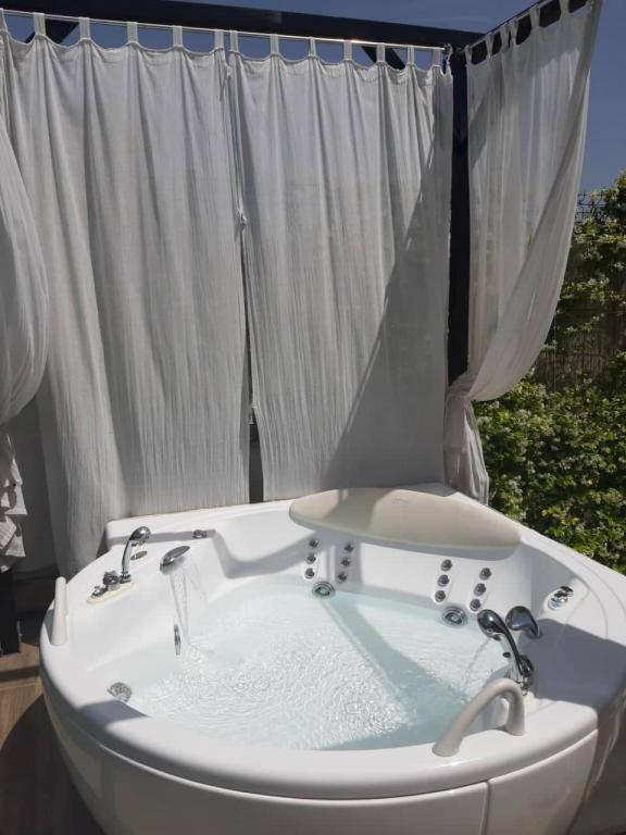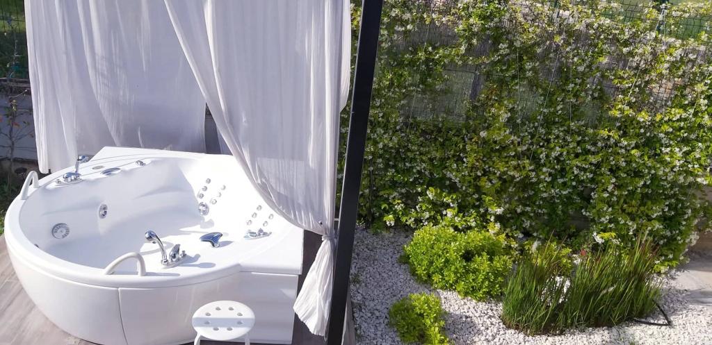 Cottage ULIKA is located in Fazana, as a detached house in a quiet location, in an olive grove. The 3000m2 garden is fully fenced and safe for pets who are welcome at no charge. Guests have private parking with no reservation and no fees. Guests use the property themselves without the presence of others. No smoking in the property. Available free of charge, guests can use the outdoor hot tub in the period from 4/17/2020. - 19. 10. 2020. god. , outdoor fireplace, bicycles, patio furniture and deck chairs. The center of Fazana and many beaches are 1 km away. Well-kept beaches for dogs are a 10-minute drive away.