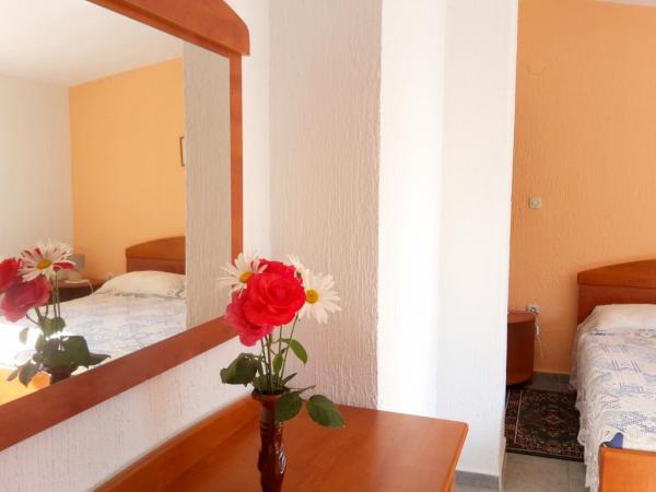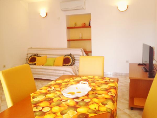 Fully equipped apartments located in Funtana, 300 meters from the new pebble beach and 100 meters from the nearest restaurant and shop. All apartments have a terrace, one or two bedrooms, one to two bathrooms, living room with dining room, air conditioning, free WiFi and parking on site. The yard is decorated with a large fenced garden with a rose garden, a barbecue area and two covered verandas. Welcome!