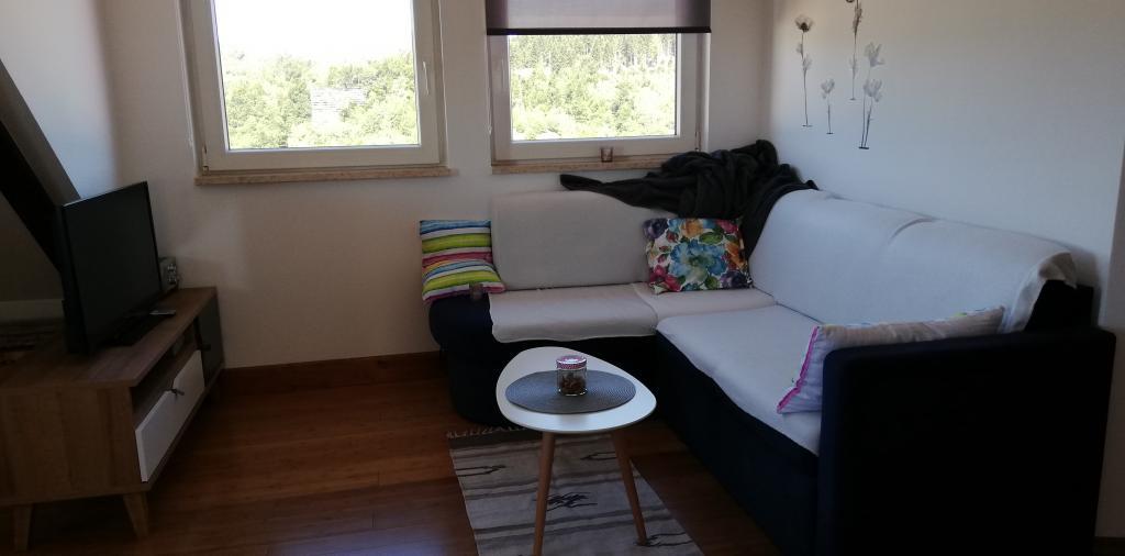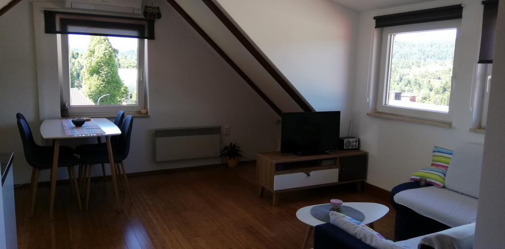 Apartment Renato is located in the high attic of the house in a quiet location just 300m from the center of Fužine, the promenade along Lake Bajer and all important facilities. The glass surfaces give a lot of heat and light, and the west side has a view of the lake. The apartment is fully equipped to make guests feel as comfortable as possible by staying with us. There is parking in the yard.