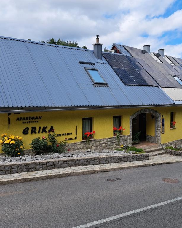 Apartments Erika are located 900 m from the center of Fužine. They are located in a family house with a separate entrance for guests. We have two apartments and they are categorized with *** and **** stars and a double room with a separate bathroom categorized with *** stars. Our accommodation is labeled Kvarner family quality and under the brands Hike friendly, Bike friendly. We have storage for eight bikes. The guests of the apartment have at their disposal our garden, which is beautifully decorated and has a lot of greenery. We have a garden grill, a children's playground, which consists of a slide, see-saw, swing, and a badminton court. Guests can enjoy the barbecue, shade and fresh mountain air in peace. The apartments have central heating, air conditioning and Wi-Fi connection. Nearby is our adrenaline park (Vara fun and paintball park), which you can visit in the summer months. Come and feel the charms of a small town in Goran and the warmth of home in our apartments, which many