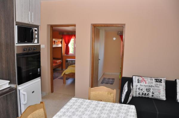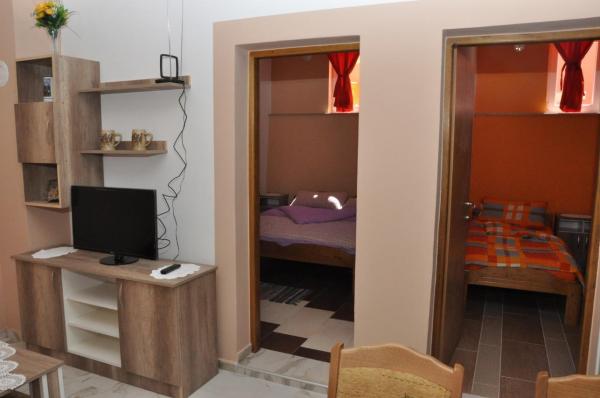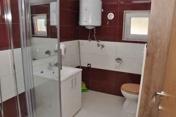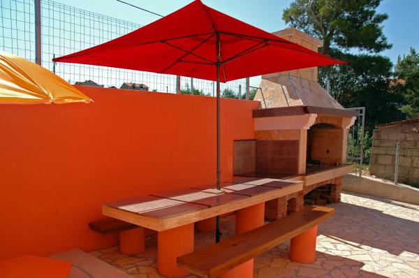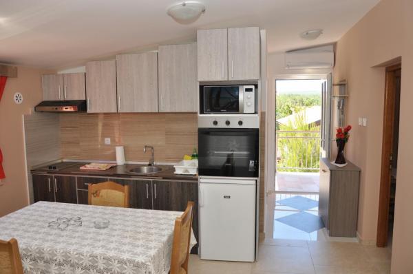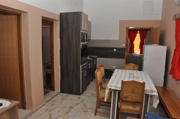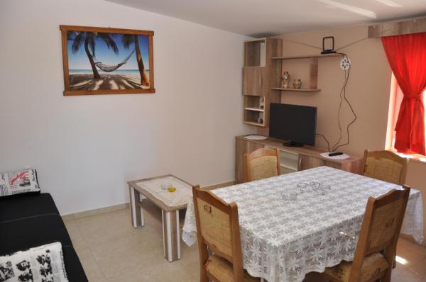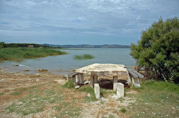 Welcome to apartments Dora. Rent two separate apartments brand new (energy certificate B) are in Gornji Karin, near Zadar and Novigrad. The apartments have views of the sea and Velebit, are located 300 m from the beach, each has 60 m2 and have a separate entrance. They are equipped with quality interior: living room and kitchen, two bedrooms, a private bathroom with shower and hallway. The apartments have air conditioning, wi-fi, SAT-TV, fridge, oven, induction hob, microwave, cutlery and drinks. One apartment has a covered terrace and balcony. Fully yard is paved with natural stone from Benkovac. In the courtyard are two stone tables with oak benches, platform for the children's pool, two large spit (grilled) with a desk, as part of a large parking lot.