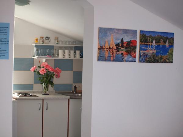 People of the desired peace will certainly rest in these apartments that have everything you need for a vacation. The kindness of housewives as well as her family is excellent. The terrace view is beautiful. Everything is clean and tidy, the possibility of using the grill. It is allowed to stay and pets which is commendable. The sea is near the apartment.