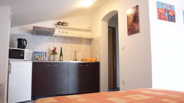 We spent two nights on the way back from Korcula to Poland. Summer is definitely stands out, is a neat, well-kept and attractive. Studio optimally equipped, in addition to a nice, quite large with a large terrace and spotlessly clean. All new, tailored to the tourist, the host has provided almost every little thing, which can be tourists needed. The only thing missing internet. Congenial hostess with the class. :) In about 30 km from Zadar, the city of the kind killed by desks, but surprisingly with a nice "beach". If someone is looking for peace and quiet, this is a find.