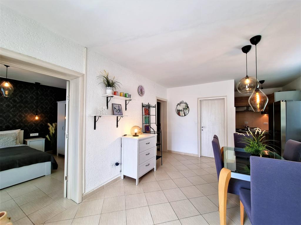 Although it is not my first time here, I am always surprised by something new. Apart from top-notch cleanliness, the owners also bring a touch of freshness to the apartment. Whether it's new wallpaper, a cover, or a complete renovation of the space itself... it doesn't matter, the experience is always Woow! This year, we were greeted with fruit and cookies a small table in the room. Very pleasant for the palate and refreshing after the trip. The beach is right next to the house, restaurant and shop as well. Jelena, Mio and their wonderful daughter Tena are special, pleasant and not intrusive. And again, they are at your disposal, for any question, conversation. The apartments are equipped with everything you need for a carefree vacation. Bring good will, a beach towel, a book and enjoy. Ružica Gavranović