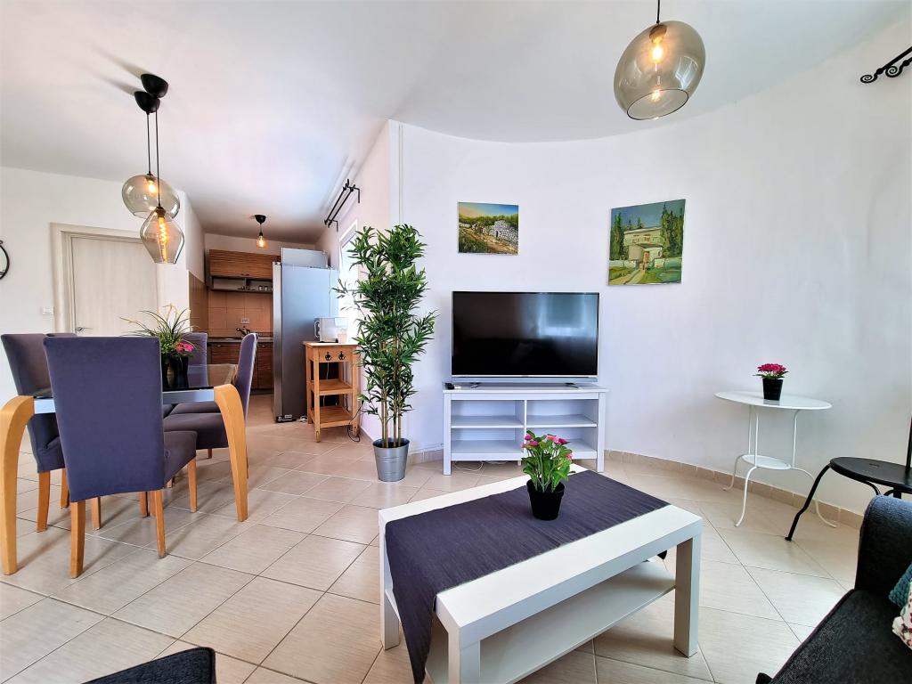 The accommodation is excellent. Everything is as in the photos. Very clean and tidy. The landlady is unobtrusive and always ready to help. We were given an extra set of bed linen after we got it dirty. The beach is beautiful in the shade. Suitable for holidays with very small children. The kitchen is equipped with dishes. The apartment really has no flaws.