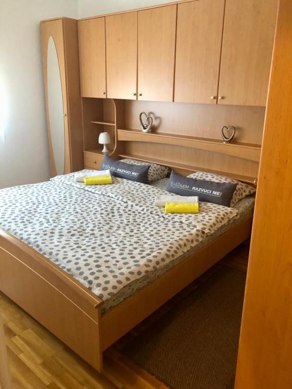 Apartment Antonio is a fully equipped two-story apartment. The apartment has 5 beds. The apartment has: 1 large double bed, 1 bed for 1 person and an additional pull-out bed for 2 people. The apartment has 2 portable air conditioners. The apartment is 150 meters from the center located on square in a beautiful quiet street. Within easy reach of all shops, restaurants, fast food, cafes, pharmacies, sports hall, market square. The apartment has its own parking secured by an electric ramp.