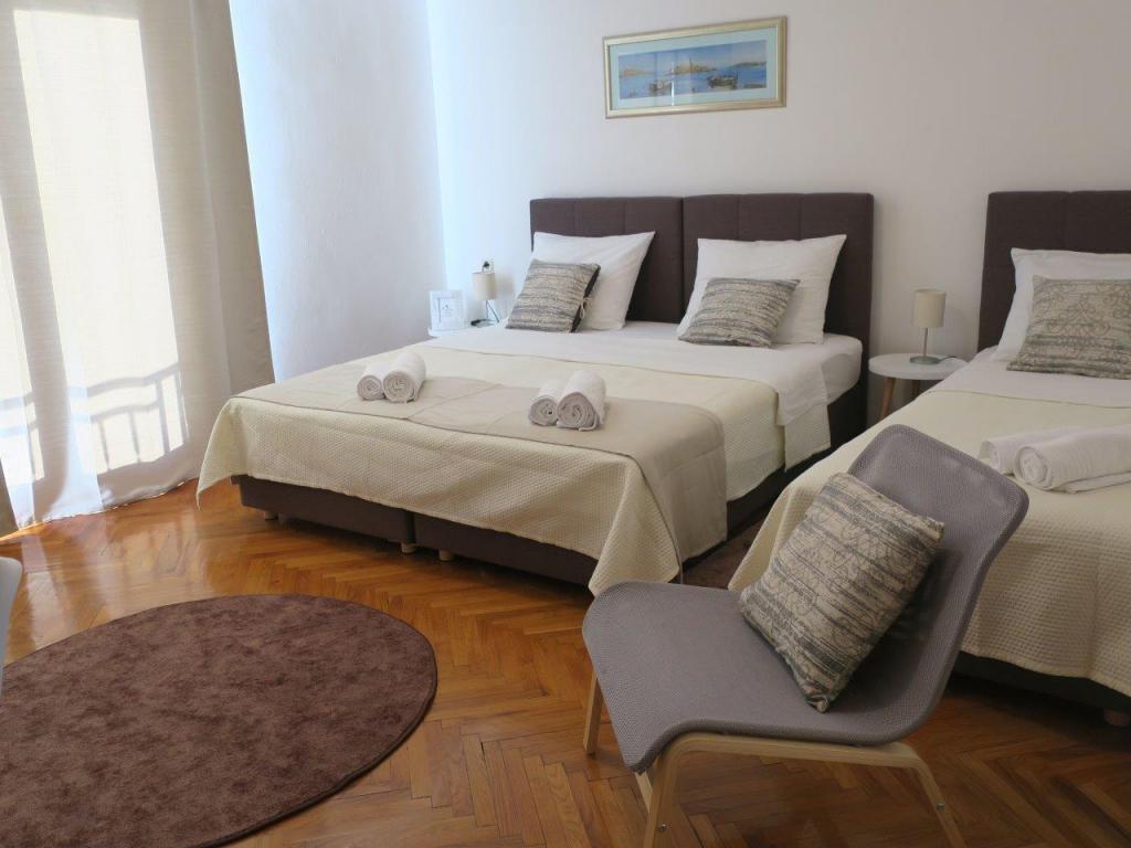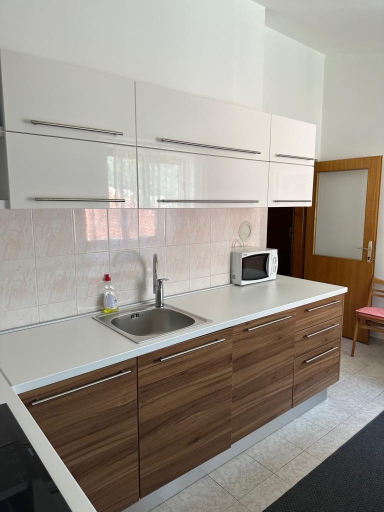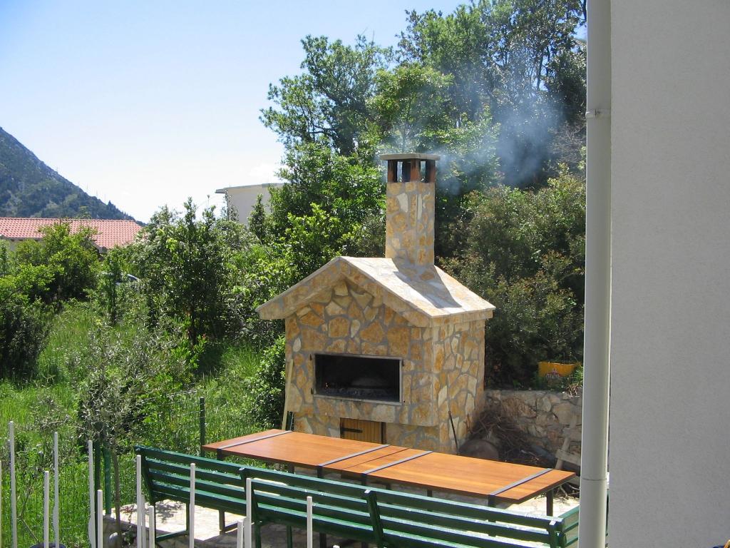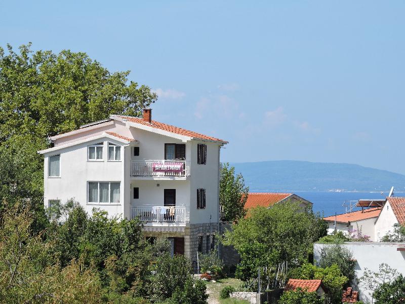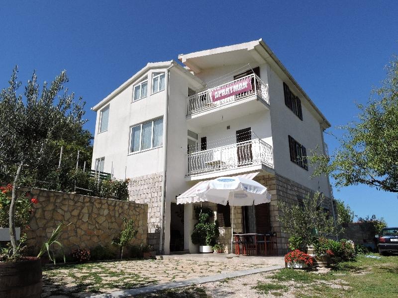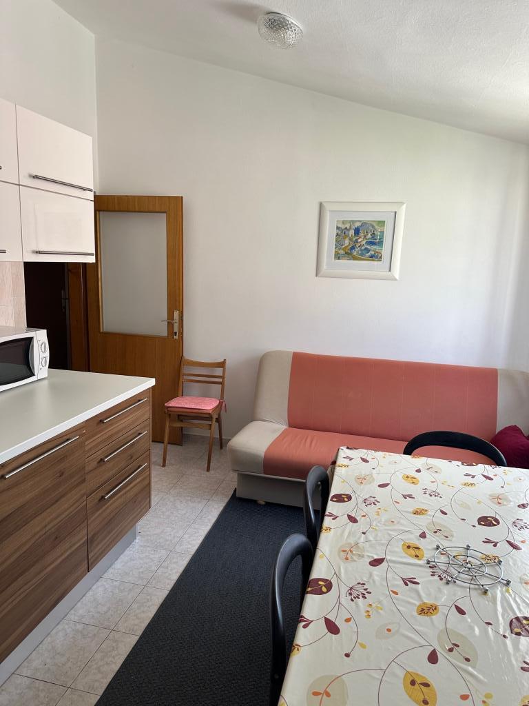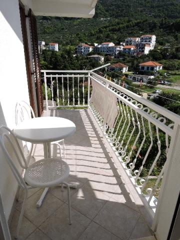 Apartment 100 m2 for 8 1 persons. The apartment has three separate bedrooms (one double and two triple), two bathrooms, a kitchen with a dining room and two balconies with a beautiful view of the sea and the surrounding area. All rooms have air conditioning. Guests can also use a grill with a table and benches for dining. Parking for guests is free.