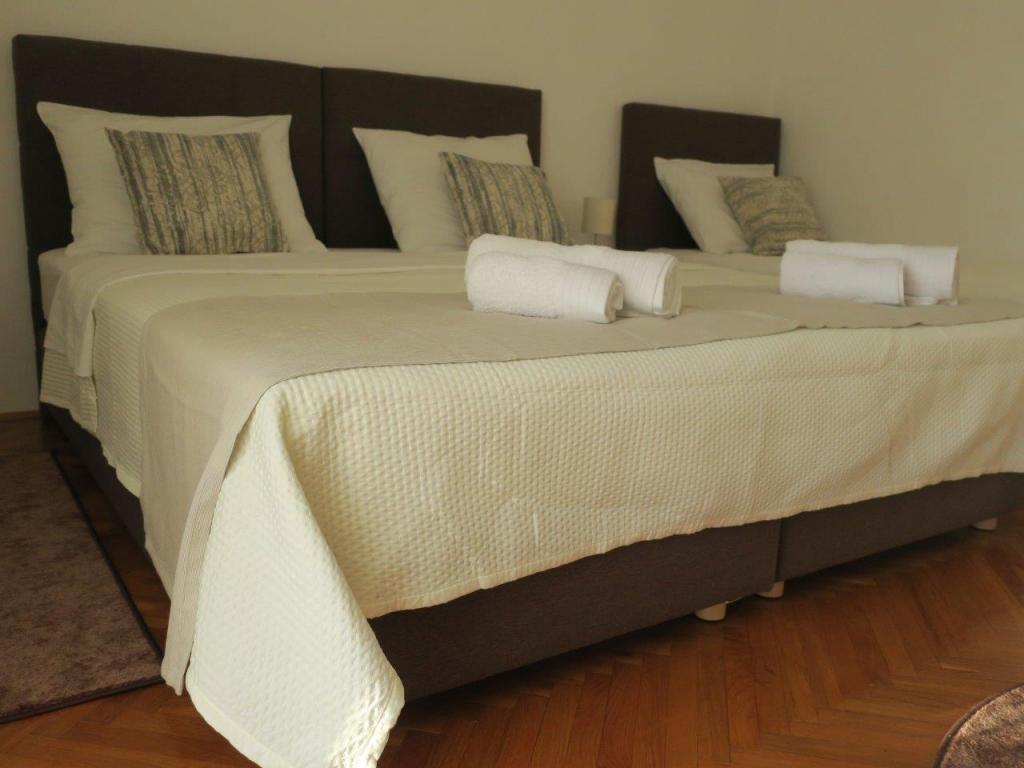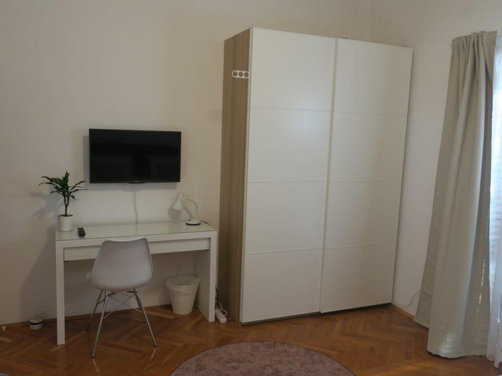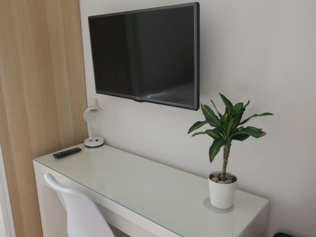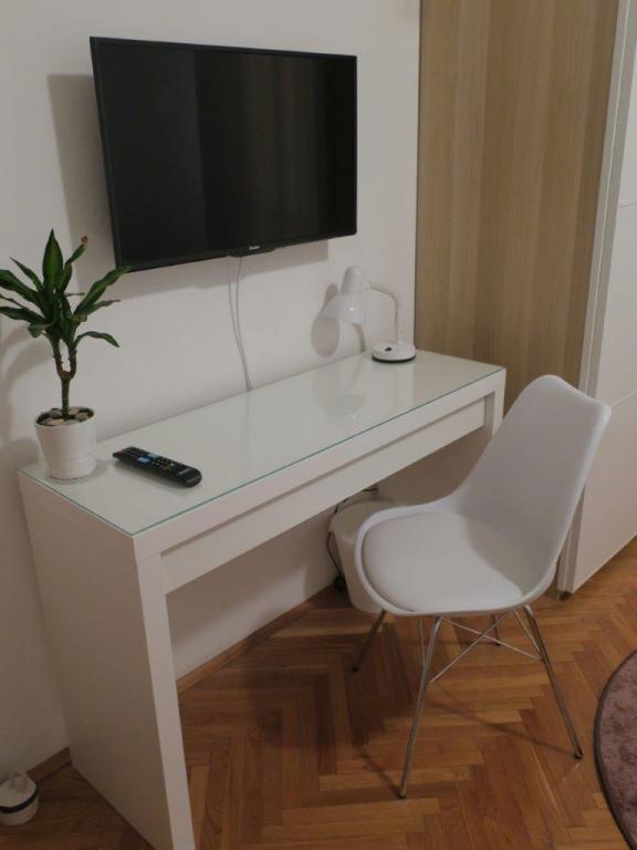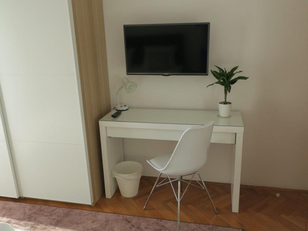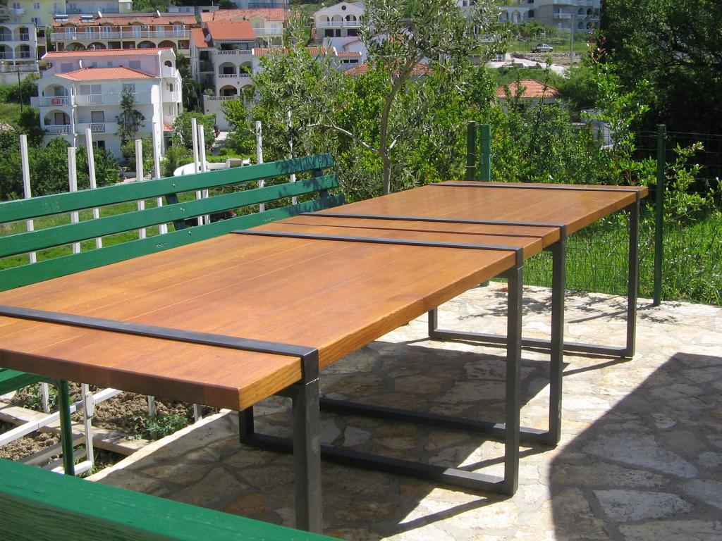Apartment 100 m2 for 8 1 persons. The apartment has three separate bedrooms (one double and two triple), two bathrooms, a kitchen with a dining room and two balconies with a beautiful view of the sea and the surrounding area. All rooms have air conditioning. Guests can also use a grill with a table and benches for dining. Parking for guests is free.