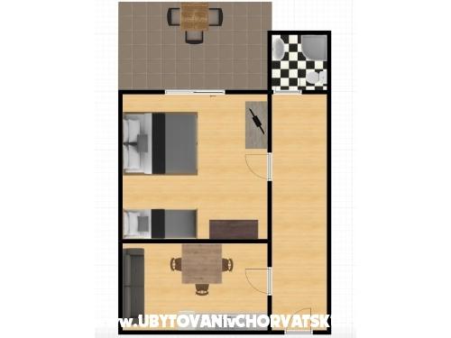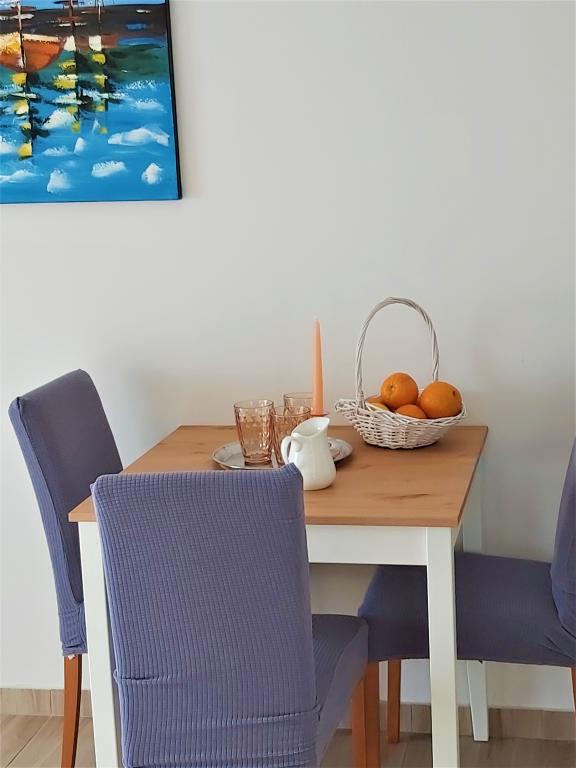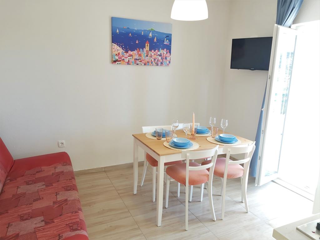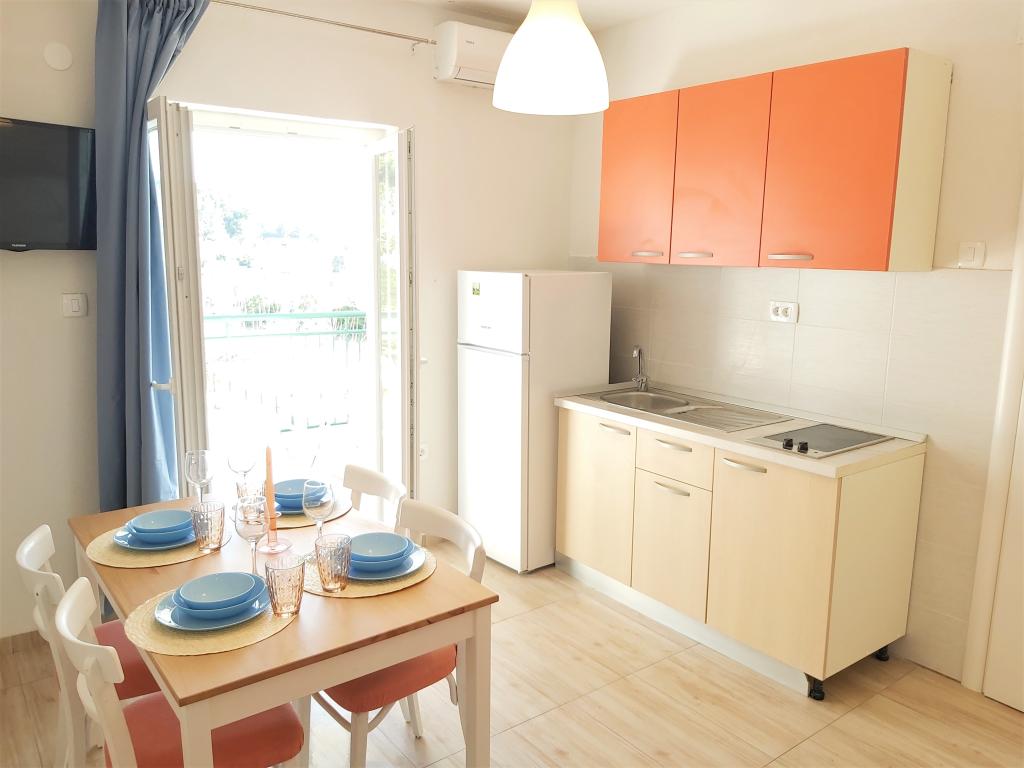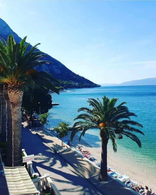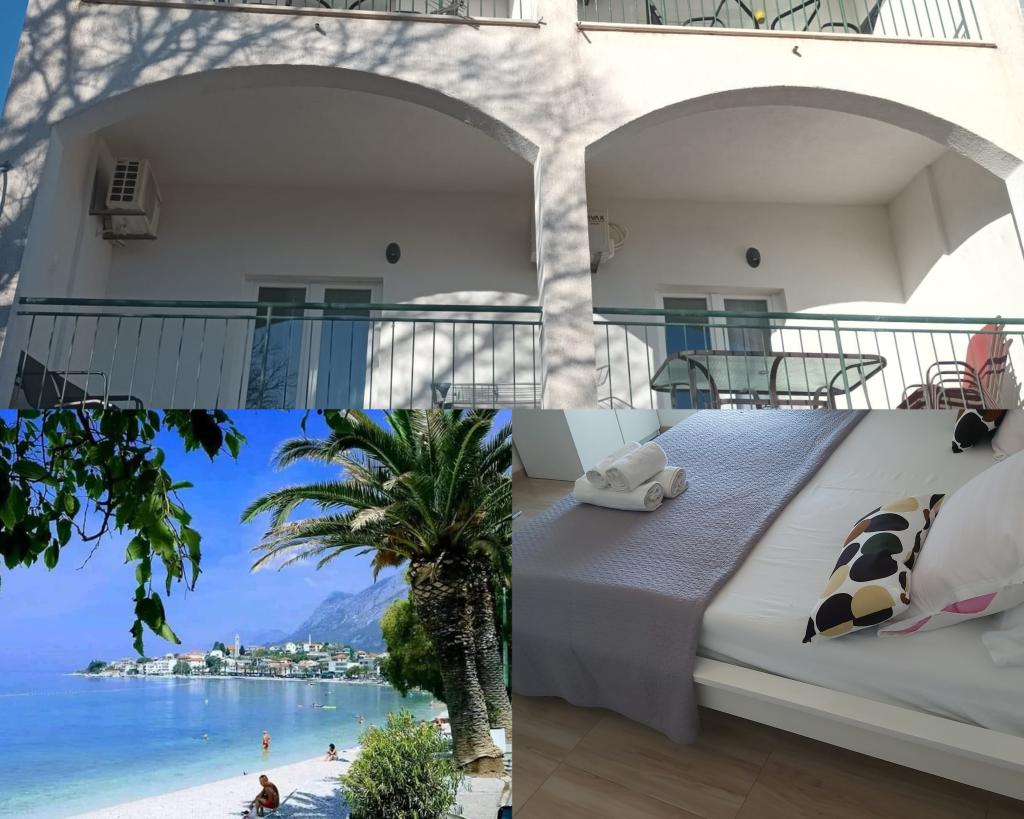 We stayed in the Ariana apartment in August, we were pleasantly surprised by the washing machine and air conditioning in both rooms. The balcony is comfortable and covered, the view of the sea is a pleasure, there is no traffic, the shop is not even 100 meters away. Everything was super clean and fragrant, freshly washed bed linen. We also received dish detergent, sponges, tea towels, shampoo, soap. We often went to pizzeria Marmont, near the house on the beach, it's great. The landlady received us, polite and unobtrusive, that suits us.