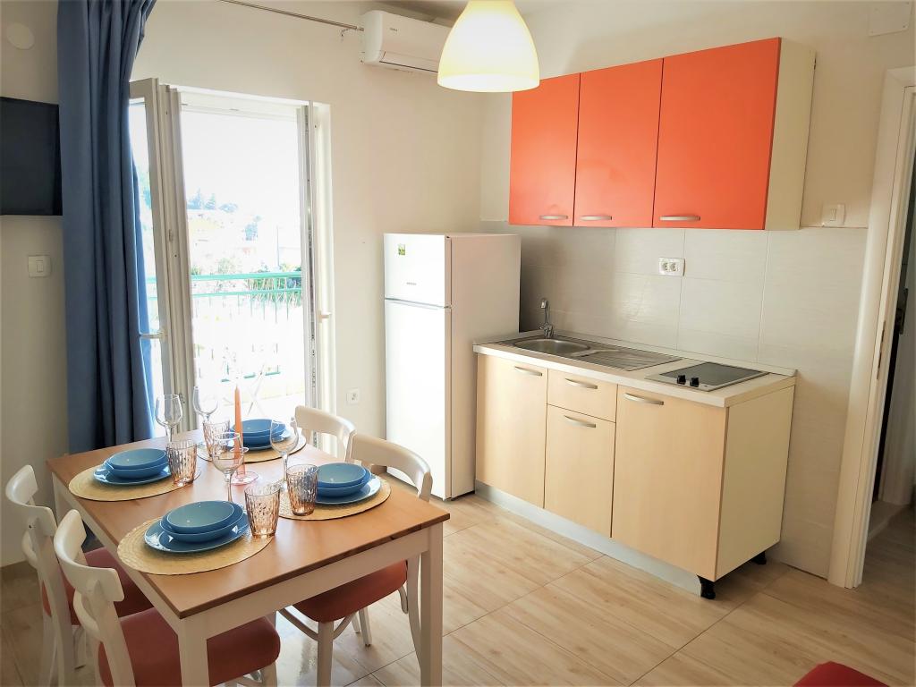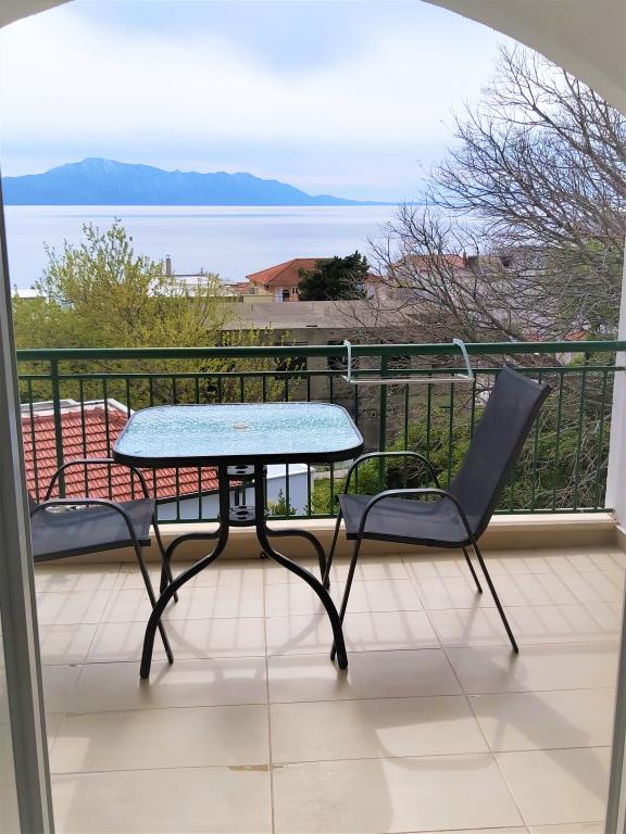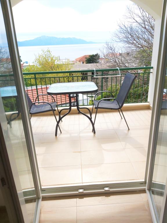 We stayed in the Ariana apartment on the second floor. It is quite spacious and equipped with everything you need, even a washing machine. Both rooms are air-conditioned, which gave us privacy because we didn't have to keep the room door open. The balcony has a beautiful view of the sea and the mountain, it is big enough to have dinner on it, it faces the quiet side where no cars pass by. Parking is safe in the yard of the house. We would love to come again.
