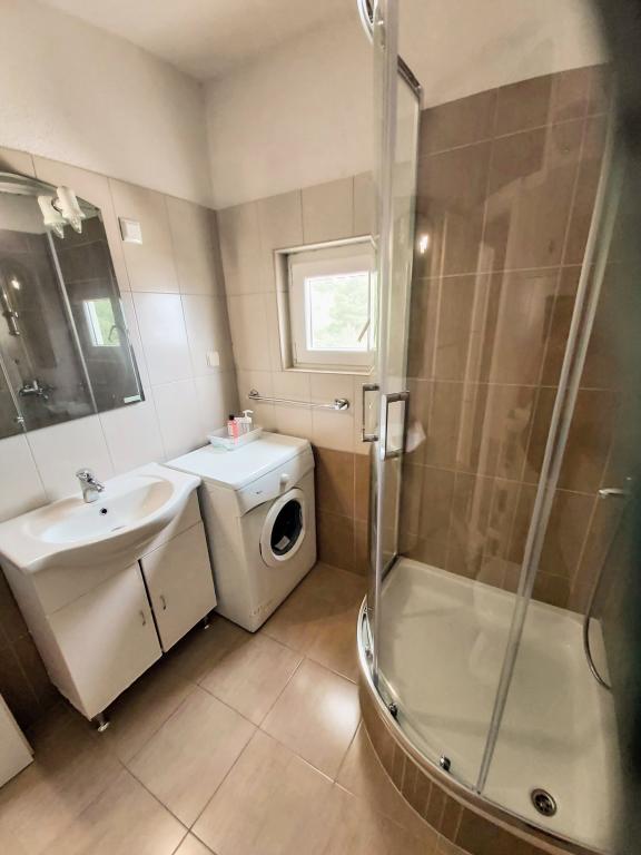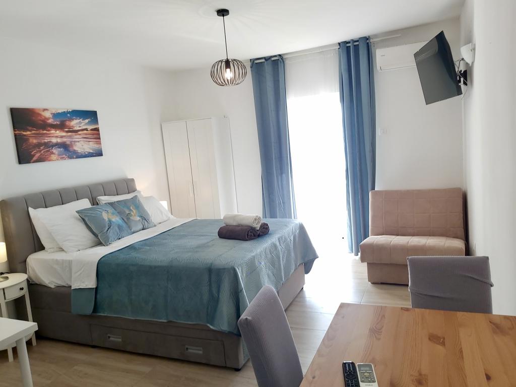 Great place, spacious and clean apartment, air conditioning in every room, washing machine in the bathroom, balcony overlooking the nearby Adriatic Sea, we were there last year and this year we will be there as a family Helpful and nice hosts We recommend