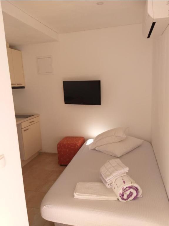 Apartments Kolumbo Enjoy your stay at Apartments Kolumbo, ideally located just a minute's walk from the beautiful pebble beach, main square, pizzerias and cafes. The property offers three accommodation units. All units are identically equipped and include: Air conditioning and free Wi-Fi. Satellite TV. Private bathroom. Equipped kitchen with hob, microwave, kettle and fridge. Accommodation unit layout: Ground floor: Two apartments with easy access. First floor: Apartment with terrace and sea view. Parking is provided for all guests. Exclusive benefit in our restaurant: As our guests, you get a 10% discount on lunch and dinner in our family restaurant Marina Restaurant. Enjoy fresh local specialties at a more affordable price.