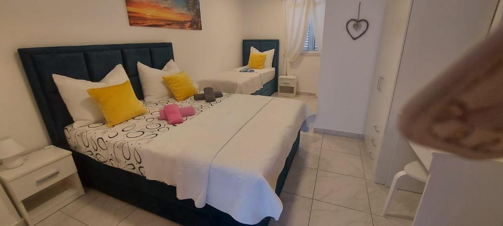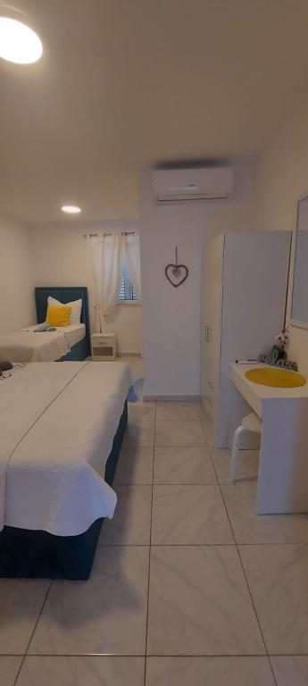We stayed in the 4+2 apartment and were delighted. Everything is spotlessly clean, tidy and new. This apartment is spacious with a large and beautiful bathroom and a sea view. The hosts are truly wonderful and especially kind. We recommend this accommodation wholeheartedly and also their homemade cherry liqueur. Beautiful beaches are just a few minutes walk away on both sides. Also practically around the corner are bars, restaurants, bakeries, etc... Thank you for everything and until next time!