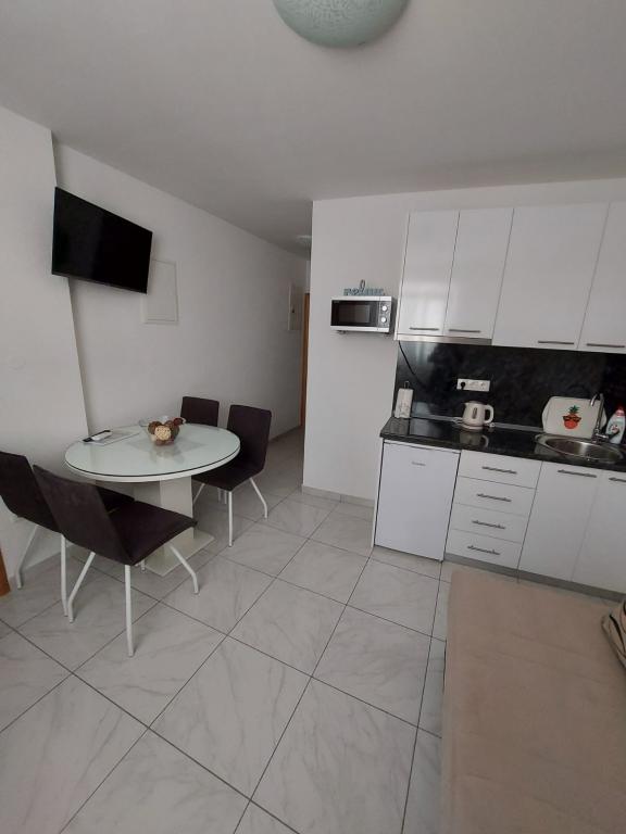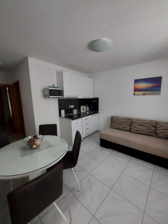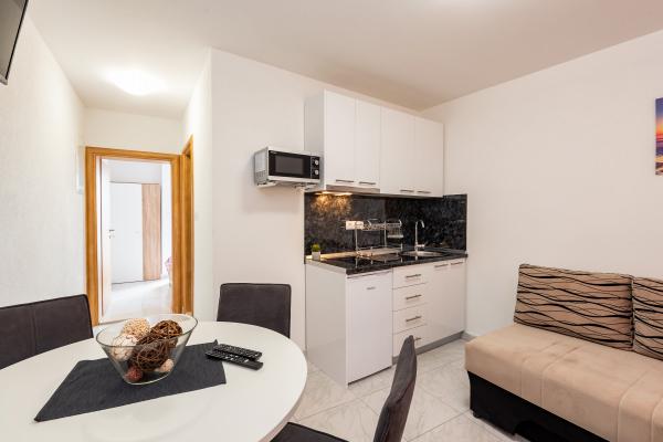 We were guests of the apartment in July 2022. It is an ideal place for people looking for a relatively quiet place to relax. The owners are very nice, who do not interfere with the stay, but are always helpful and offer their products delicious drinks. Apartment, Housing clean, the only drawback is that there is little space for personal belongings in the apartment 2 + 2 (a narrow wardrobe with a few shelves) and a very narrow balcony. Very good location, close to the beach and restaurants, bakery and shop, I recommend this apartment.