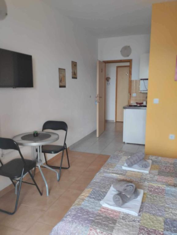 Villa Ana is located in the small, quiet Dalmatian town of Gradac. We are located right next to the beach, which is less than a minute's walk away. Nearby are all the necessary facilities, shops, restaurants, cafes and the like. Villa Ana consists of 6 studio apartments for 2, 2+1 and 3 persons. All studios have a mini kitchen with a microwave and kettle, TV, air conditioning, WiFi and a balcony. 4 out of 6 apartments overlook the sea, while two have a view of the mountains. Parking is provided in front of the house. We look forward to your arrivals.