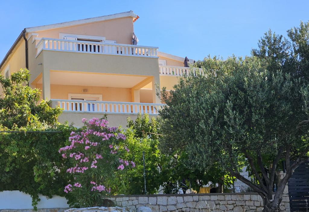 The property is located first row to the sea, under the Jelinjak hill on the south side of a long beautiful bay between the settlements of Grebaštica and Šparadići. These settlements are connected by the main road, as well as by a well-maintained path along the sea suitable for walking, jogging and cycling. The property is newly built. The apartment has a terrace overlooking the sea and the settlement of Grebaštica. The beach is concrete and pebble with places in the shade of olive trees.