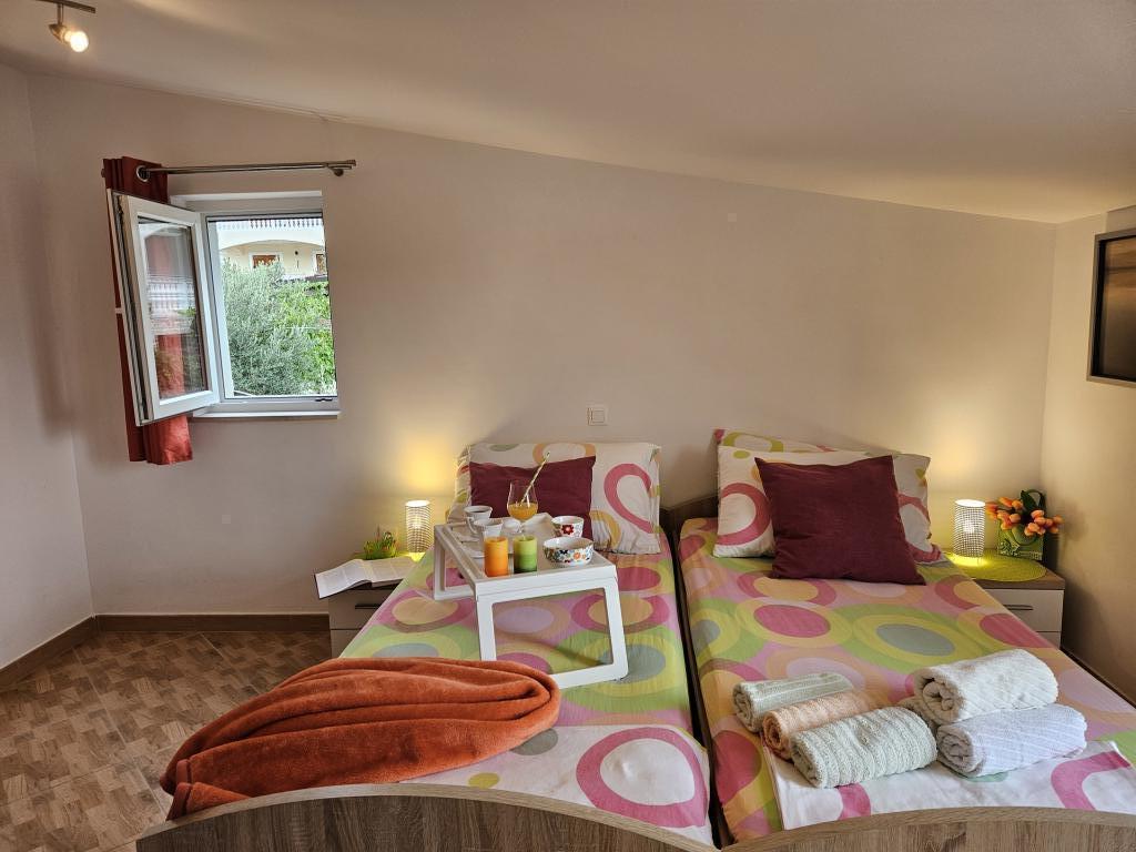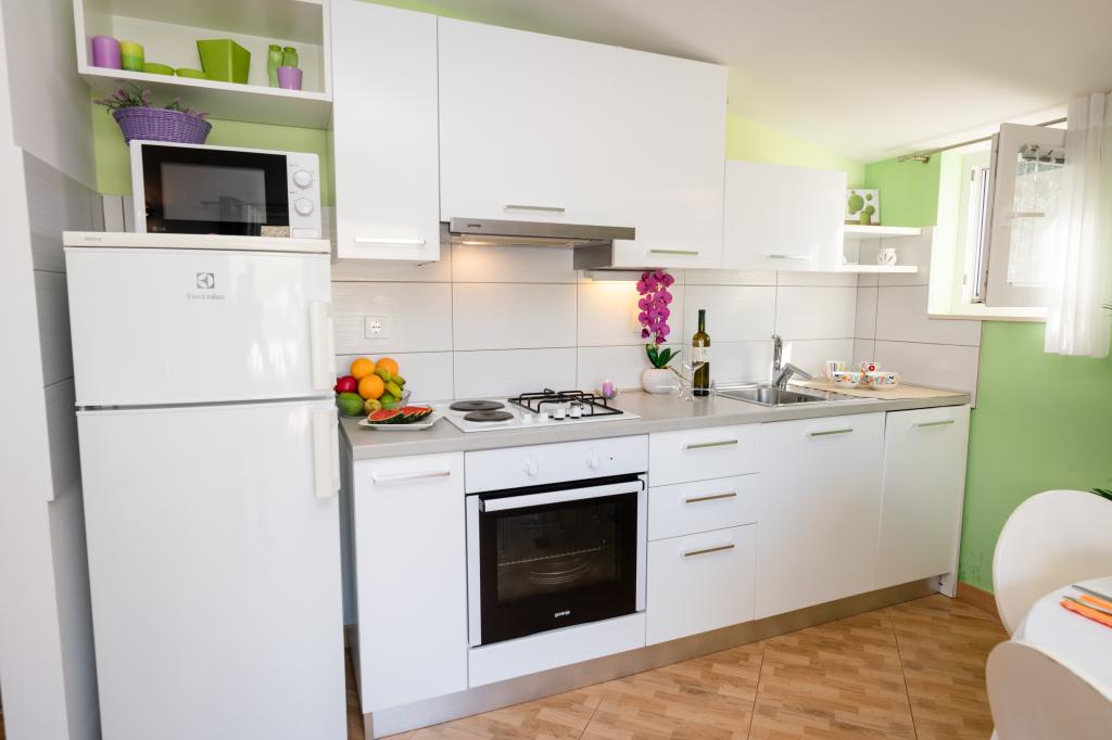 Apartment users have at their disposal a dishwasher and a washing machine. A boat mooring and a place for a trailer are provided, as well as parking for a car. These services are free of charge. Apartment users have at their disposal a cot, parasols and deck chairs. There is a place for a barbecue or grill in the courtyard of the house. The apartment has free internet (wi-fi). Due to its distance from the main road, apartment users do not have to worry about the safety of their children. In the morning hours, there is the possibility of buying basic food products in the immediate vicinity of the apartment by bus. The view of the entire archipelago from the top of Jelinjak hill, which can be reached by car or bicycle, is definitely recommended. There are also two national parks nearby: Krka and Kornati. Welcome!