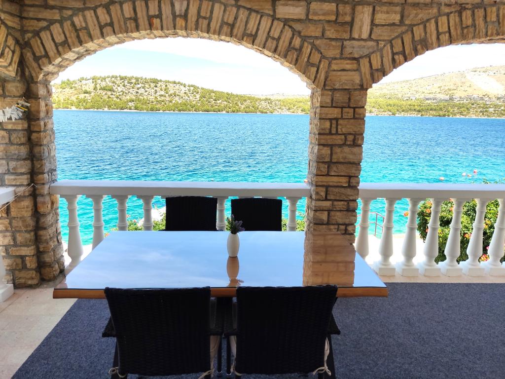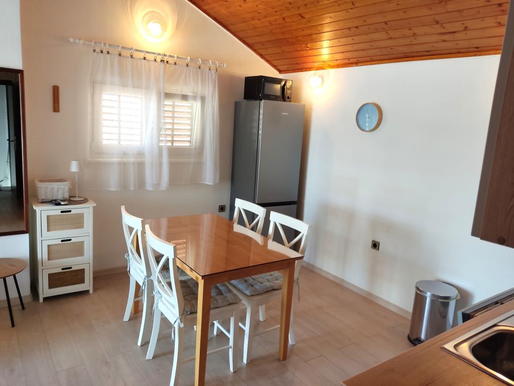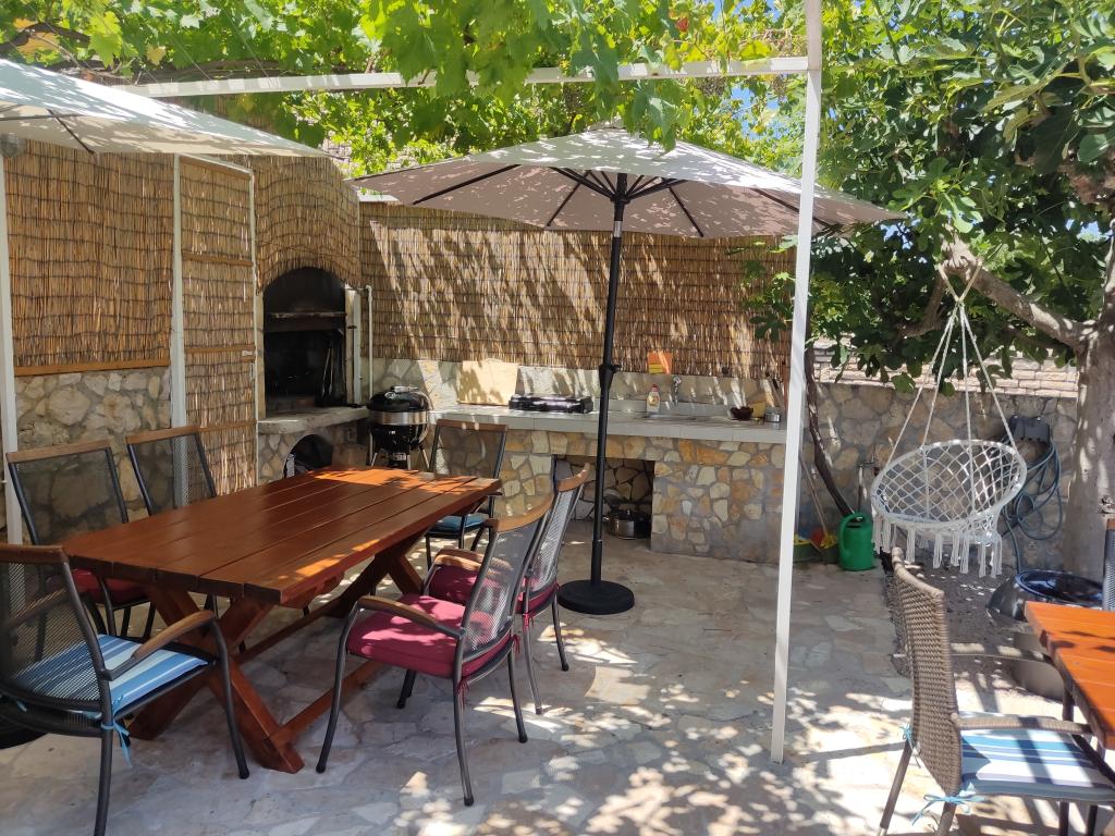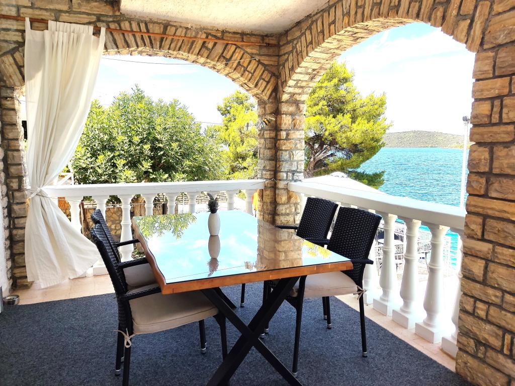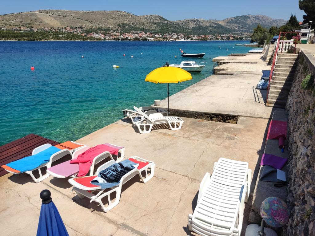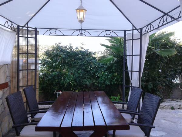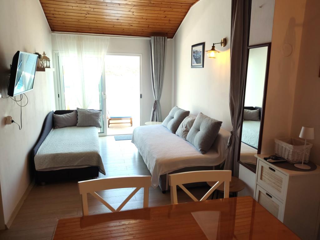 The house is on super locaton- several meters from the sea. We were tree families-all house was ours. We had our own seaside, sunbeds, umbrellas, a big yard and with outside kitchen- all were included in these apartaments' price. Everything was clean, enough space. The owner was incredible and very helpful. He met us with welcome cold drinks, recommended places to have dinner. Before our trip he sent photos with water, beach for kids and etc. what we asked. In this place aren't any shops, but everyday there are local people, who brought bread, icecream and vegetables every morning.