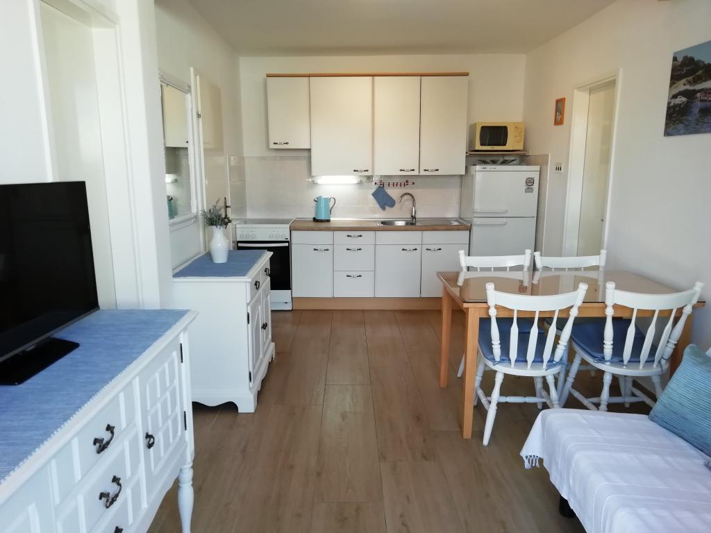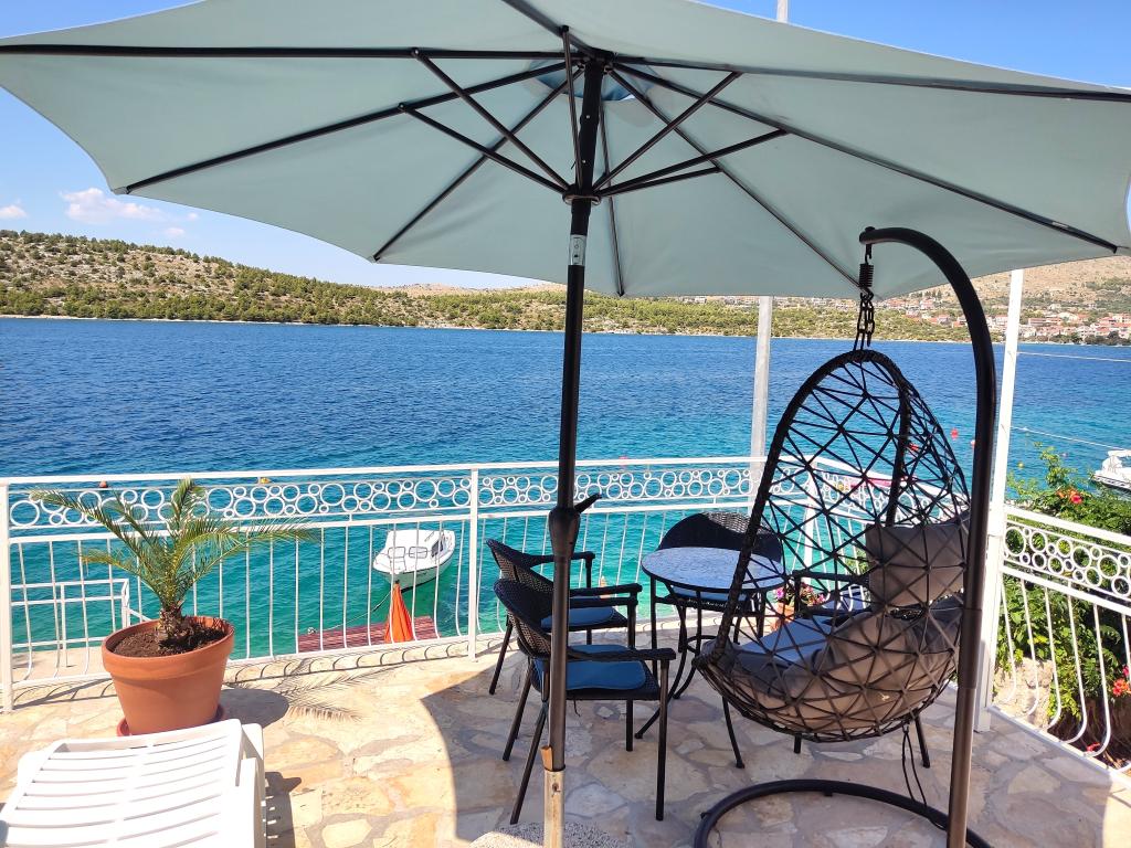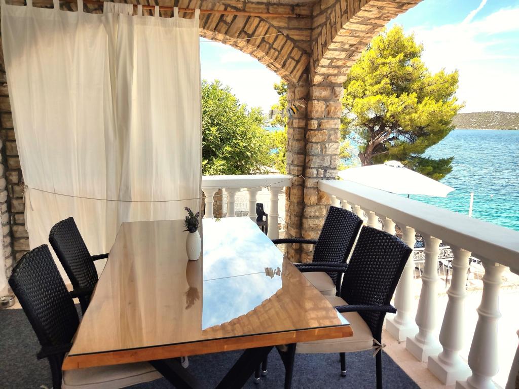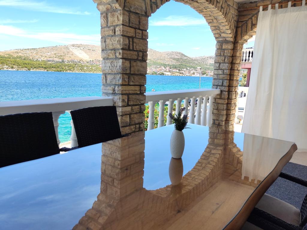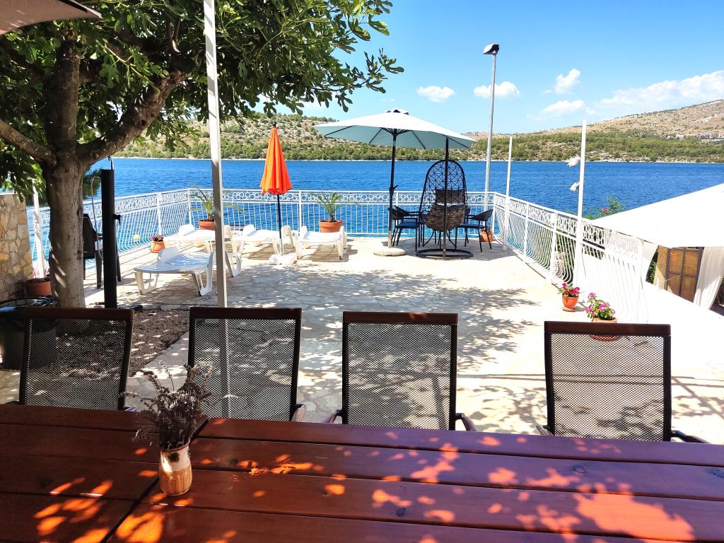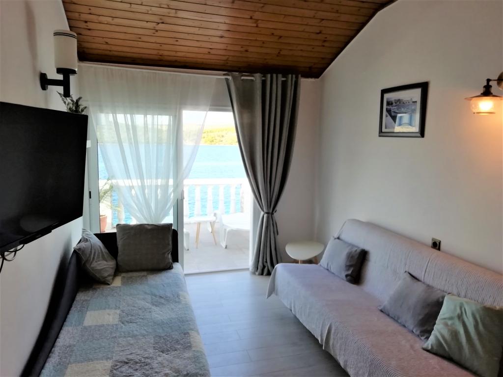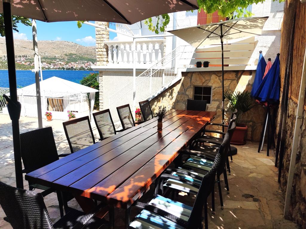 The house is on super locaton- several meters from the sea. We were tree families-all house was ours. We had our own seaside, sunbeds, umbrellas, a big yard and with outside kitchen- all were included in these apartaments' price. Everything was clean, enough space. The owner was incredible and very helpful. He met us with welcome cold drinks, recommended places to have dinner. Before our trip he sent photos with water, beach for kids and etc. what we asked. In this place aren't any shops, but everyday there are local people, who brought bread, icecream and vegetables every morning.
