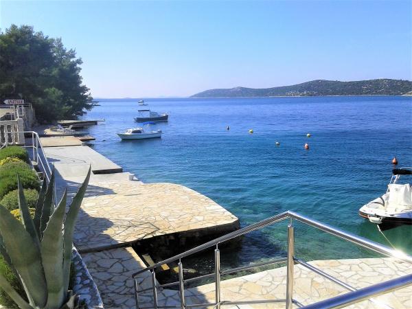 Whole house with three apartments is for rent, ideal for three families and groups up to 12 persons. The house is located in a nice location , 7 m from the beach in the quiet tourist place Šparadići. Two apartments have spacious terraces with beautiful sea views and the lower apartment has a fenced yard. Also is available a large terrace above the sea, with a grill and two garden tables, where guests can stay together in the shade of the fig and the vine tree. Owners don't live in the house. All apartments have air conditioning, free parking, TV, WiFi, free sunbeds and umbrellas on the beach and terraces. Possibility of boat moorings in front of the house. An ideal place for your family holiday. Welcome.