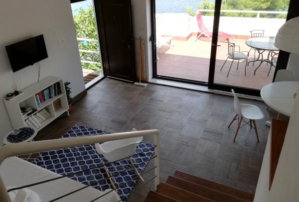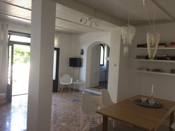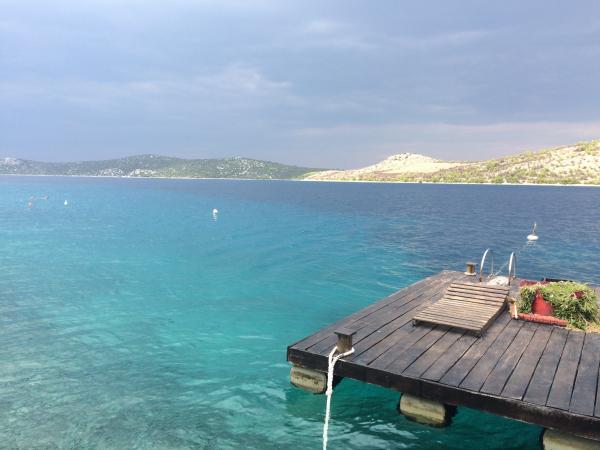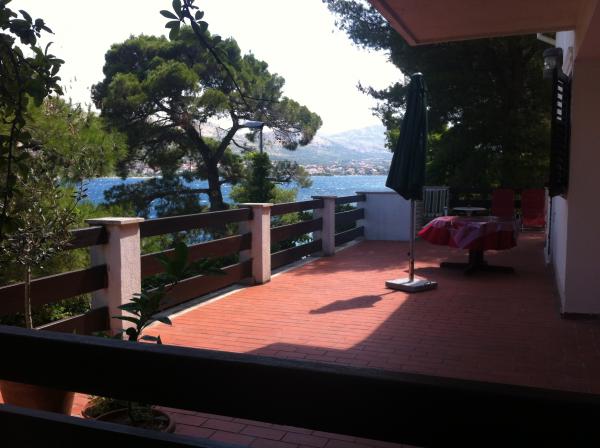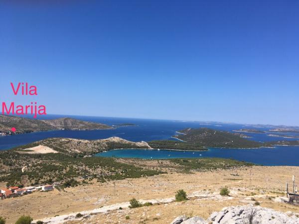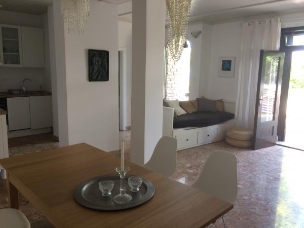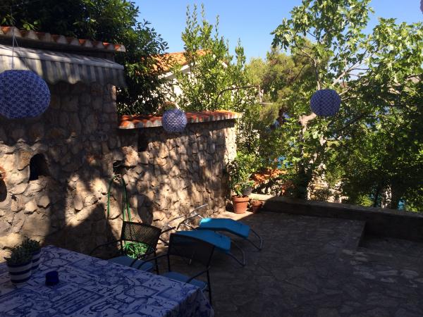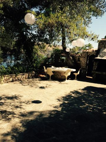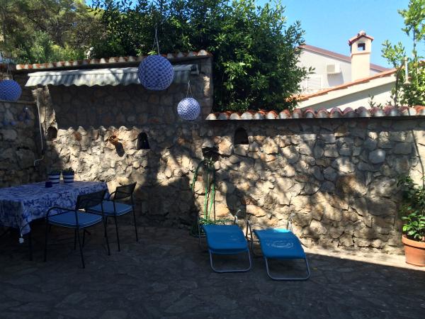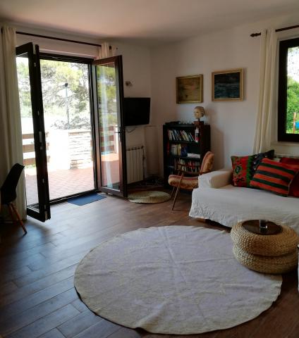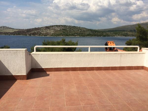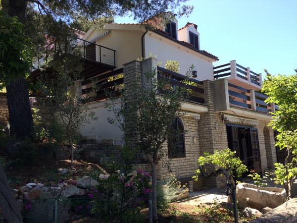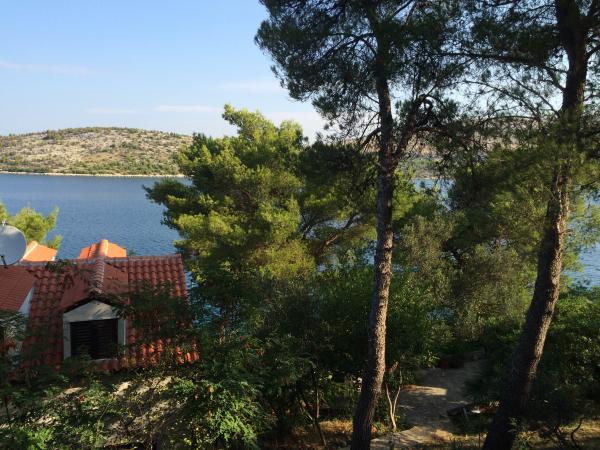 Completely and modernly equipped apartments in a quiet place Šparadići only 8 km from the center of Primošten. The house is located in the first and only row to the sea with a large garden in the green and pine forest. It is an architectural blend of modern and traditional Dalmatian houses with mosaics, stone sculptures and stone paths that lead through a spacious Mediterranean garden with local plant and tree plants such as fragrant lavender, rosemary, smell and olive trees, figs and lemons ... In our garden Guests can enjoy preparing meals on several outdoor barbecues and enjoy a pleasant companion on the spacious stone terrace with a large rustic stone table. The house, surrounded by woods and a Mediterranean garden with a crystal-clear, azure blue sea on the other hand, is an ideal place for unique moments of peace and relaxation. The sea is only 5 meters away from the house; private beach and shore approx. 60m mostly used only by our guests as stone mole with mosaic and a wooden floating pontoon in the extension.