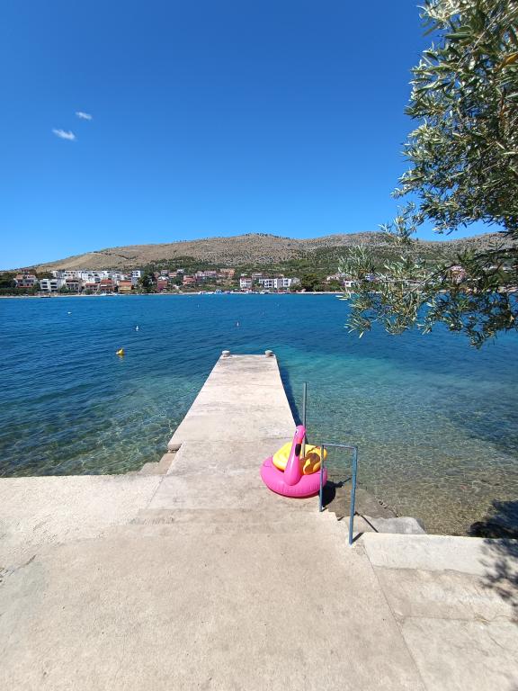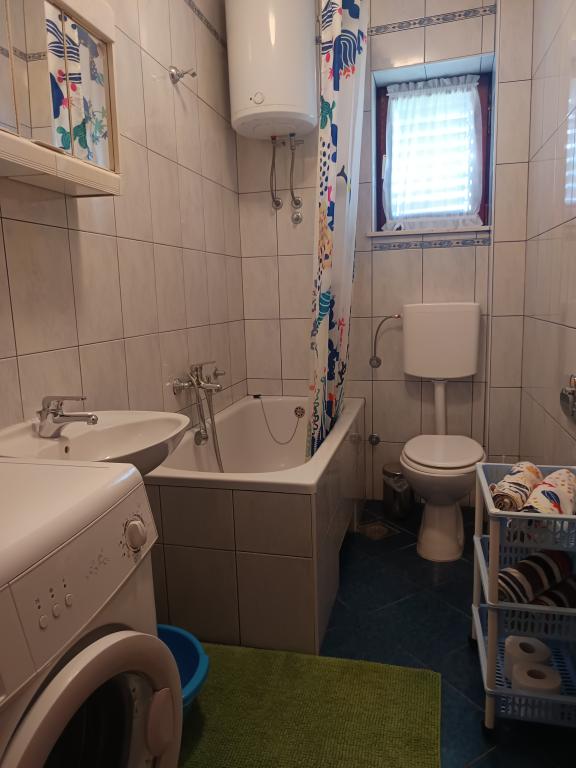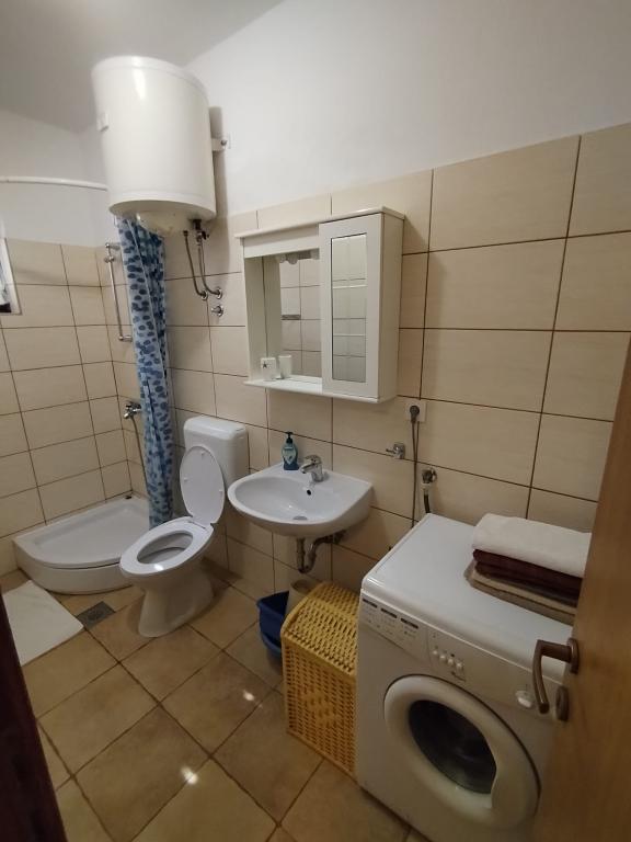 The facility is situated by the sea, under the north side of the hill Jelinjak covered with dense pine forest and under the Adriatic tourist road on the south side of long lovely bay where settlements are located Grebaštica and Sparadici. It is a newly constructed building, which consists of three floors and a ground floor used by the owner of the apartment and first floor with two apartments and second floors with one apartment .. All apartments, especially the one on the second floor that is modern furnished and equipped, balcony with a nice view of the sea and the greater part of the village Grebaštica provided that there is a terrace on the first floor, the largest, stretching from one side to another object. In case of availability of only one apartment's terrace can be used as a single entity, whereas in the case of availability of both apartments terrace diagonally divided high screen that provides a good visual privacy of each user of the apartment. The beach is a concrete-gravel with shady areas under trees.