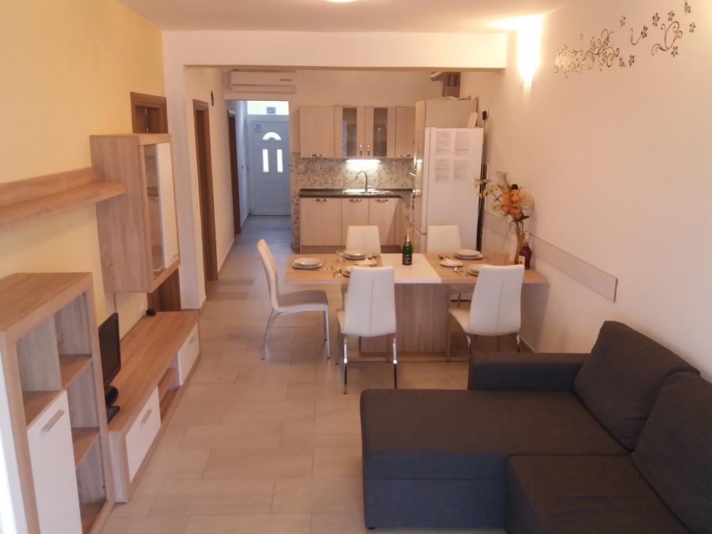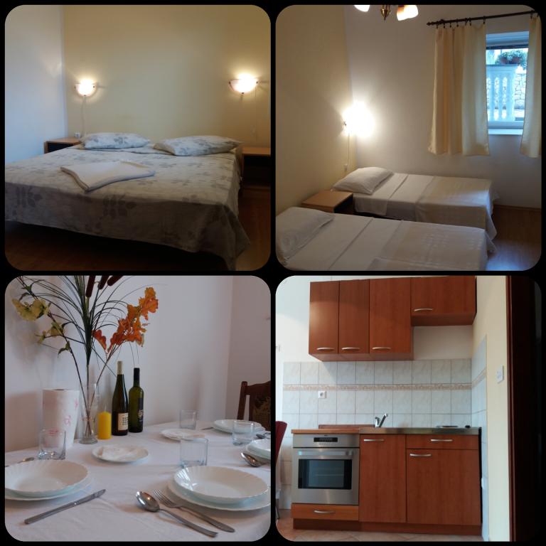 Croatia/Dalmatia/city Šibenik/place: Grebaštica Family house with apartments. Each apartment has a private entrance, terrace, parking space, air conditioning, wifi. - the facility is located 700 meters from the first beach (suitable for families with small children). 2 x small apartment *** for 2-4 people (ground floor of a family house, apartment size 40m2, private entrance, 2 bedrooms, kitchen, bathroom, terrace, air conditioning, wifi, parking). Website details: apartment 1., 2. 1 x Studio apartment *** 2-4 persons (ground floor, 54m2, kitchen + living room, bathroom, terrace, grill, parking, wifi...) Website details: apartment 3 2 x large apartment for 4-5 people (1st floor, private entrance, 130m2, 3 bedrooms, kitchen and living room, 1 x bathroom/toilet and 1 x small toilet, large terrace with a view of the sea, parking space ( Details on the website: apartment 4. and 5.) For any additional information, contact the owner (e-mail, sms, whatsApp, viber) Languages: ENG, DE, HRV, ITA Kind regards Svirčić Family :)