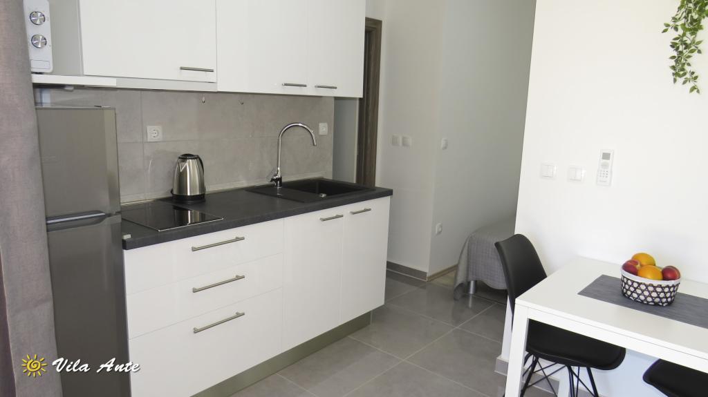Villa Ante Apartments are located by the sea in the beautiful village of Sparadici, this small place is perfect for relaxing and having fun with family and friends. Vila Ante offers you completely renovated and beautifully furnished apartments equipped with air conditioning, TV and internet. Parking is located right in front of the house and is free for all our guests. All apartments have sea views and beautifully decorated terraces. With the apartments you can use the pool with a water heating system so the temperature is always suitable for bathing! The barbecue area is in the back yard and is the perfect place to gather more people. Enjoy the beach every day with the free use of deck chairs and parasols made for your dream vacation. We offer mooring options for boats and in addition you have free parking for trailers only 100 meters from the house. The host is always at your service during your stay! See you!