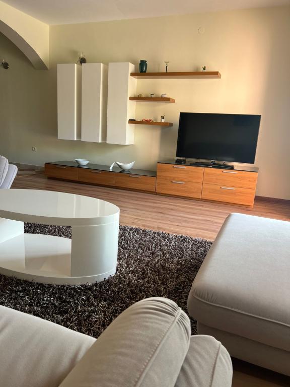 Beautiful, large and clean apartment that is fully equipped. Nice view of the sea. The beach is within sight and a few minutes walk. The owner is friendly and especially helpful in everything, for example he helped us repair the air conditioner in the car. So we are satisfied and will come back again in a year. It's quiet here. Frank!