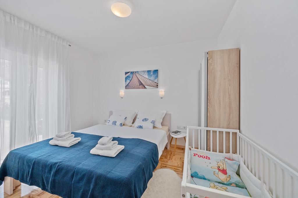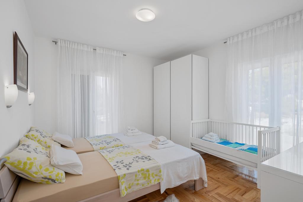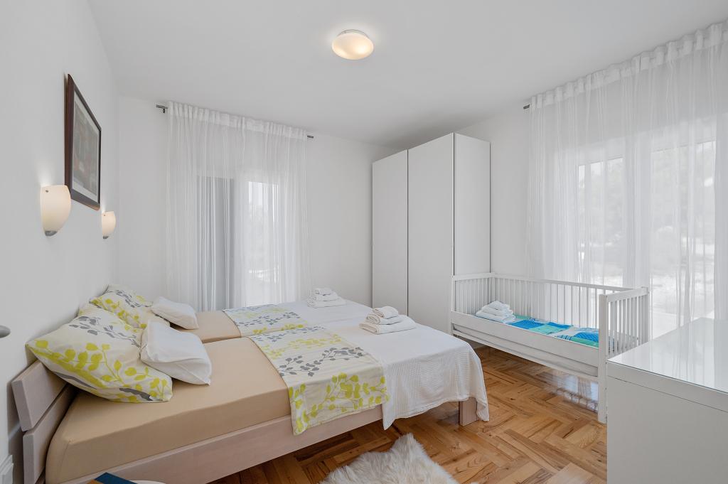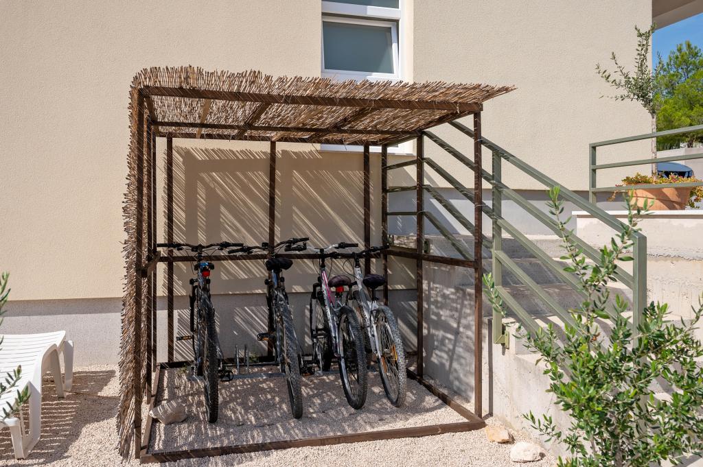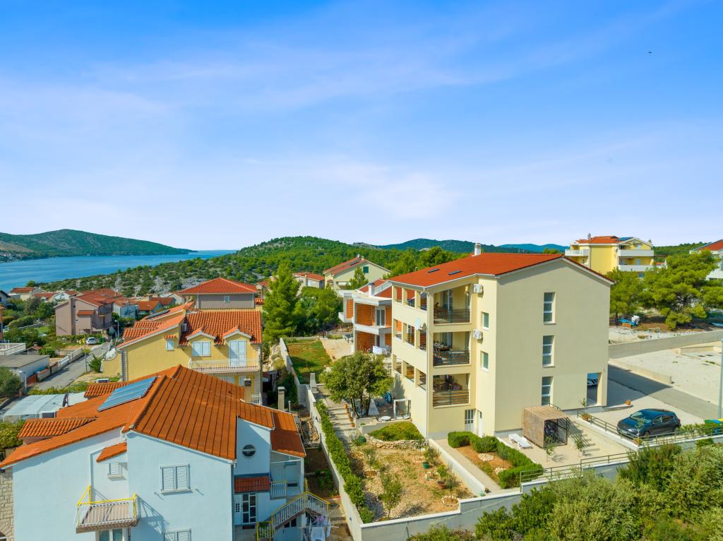 Villa Salvia Adriatica - a 4 star category in its two new suites, Salvia on the first and Adriatica on the second floor, offers an unforgettable vacation experience. Each apartment of 100 m2 has two bedrooms with bathrooms, a kitchen with all necessary appliances and a large living room with a spacious covered terrace (30 m2) with a large dining table and a lounge for a pleasant gathering and relaxation with a view of the coast of Grebastica , nearby islands and blue sea open sea. Free Wi-Fi, satellite and terrestrial television are available. The apartments are air-conditioned, with heating in the colder days. There are enough parking spaces in the yard. Our apartments are fully adapted to the children's stay. In addition to the protection for sockets and baby chairs / cribs we also offer a crib on your inquiry.