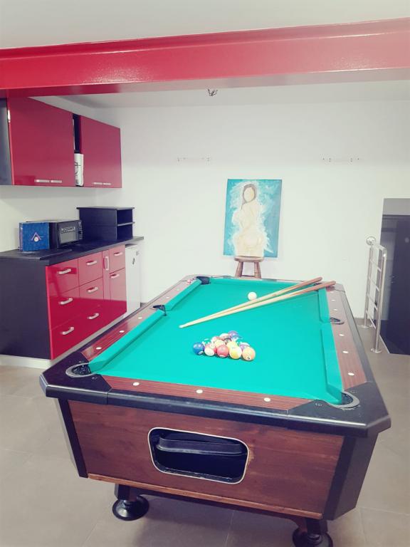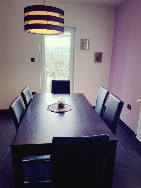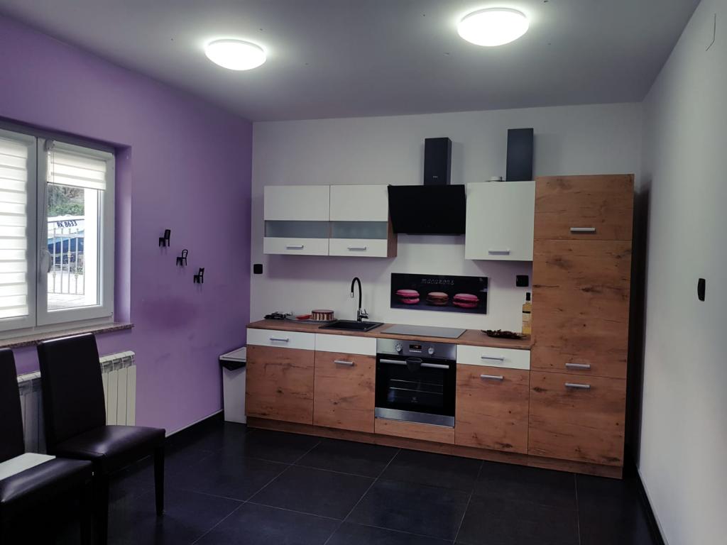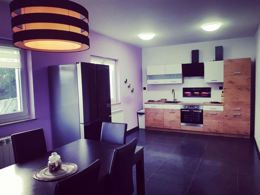 Holiday house in a quiet part of the river, in Jelenje na Grobniku, only 15 minutes from the center of the river or the sea and beaches and only 5 minutes from the racetrack and airport Grobnik and 15 minutes from Platak and ski resort. Completely newly decorated holiday home, modern, airy and easy to use. On an area of more than 250 m2 on two floors connected by an internal staircase there is everything needed to accommodate 8 people. 3 bedrooms (two with a large double bed and one with the possibility of separating two beds as needed) and a living room with a large sofa for 2 people. each room is equipped with a satellite TV while the two larger rooms are also equipped with a work desk. The house has two bathrooms, one of which is on the lower floor next to the living room, and the other in the largest master bedroom which also has a balcony. The ground floor has a spacious living room, dining room with kitchen and interior design stairs that connect the ground floor and first floor. On the basement there is a gym, toilet and billiards and bar.