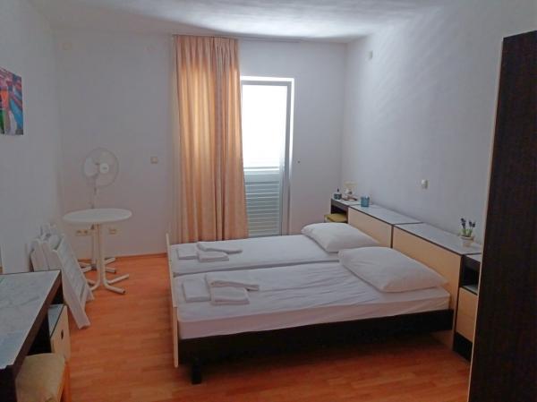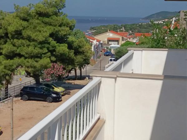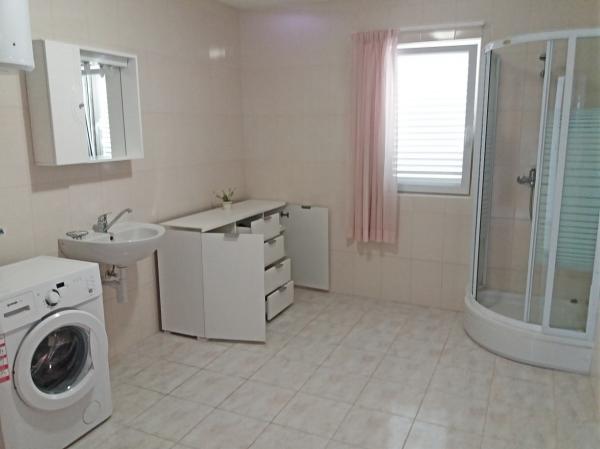 The house is newly built and away from the sea 600 m. The apartment is located on a separate floor and has its own private entrance. All are modernly furnished and equipped for your enjoyable stay, each room has its own terrace with beautiful views. The apartment includes a kitchen with a dining area and a living room which also has its own sea-view terrace. There is a full apartment with three rooms, four terraces and two bathrooms, kitchen and living room. Parking is not private, in the street there is enough parking space common to all neighbors. The beautiful pebble beach is reached by foot in less than 10 minutes. There is a shop in the settlement and other facilities (bank, pharmacy) are in the city center 800 m away.