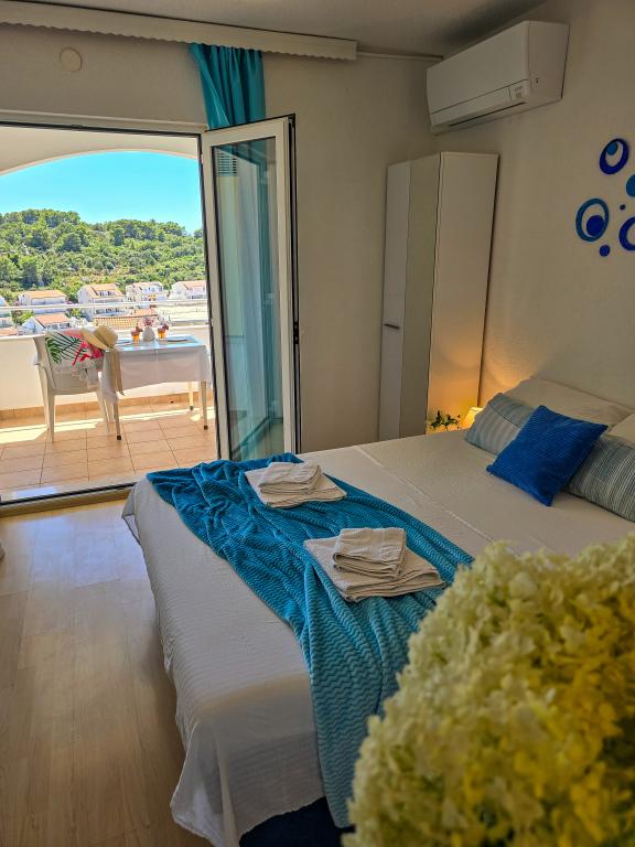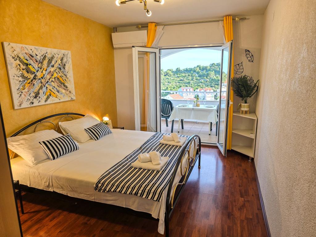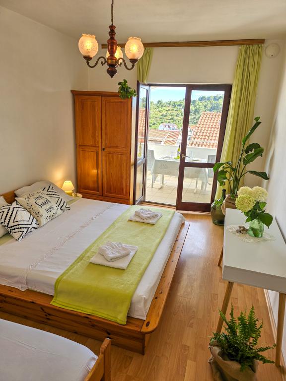 We are located on the island of Hvar, in the quiet part of Hvar town, only 10-15 minutes walk from the city center or 5 minutes by car. We are located a few minutes walk from the small shop where you can buy everything you need and from the most beautiful beaches in town. The beach has two restaurants, with the possibility of renting sun loungers, umbrellas, boats, pedal boats and the like. Our family house has a large terrace with garden and a fireplace that you can use. We also have private parking. Almost all of our apartments / rooms have sea views, the islands of Vis and Korcula and Pakleni islands. Bed linen, towels (large and small), sojourn tax, electricity and water use parking place, sanitary facilities, final cleaning, pets allowed and internet. In case you choose to be our guests, we can welcome you to the waterfront or catamaran bus, depending on the time of your arrival. For more information please feel free to contact us! Thanks and welcome!