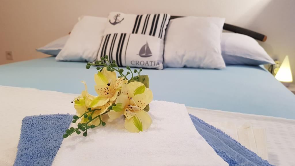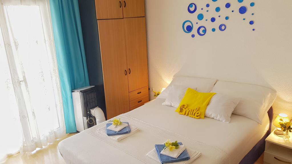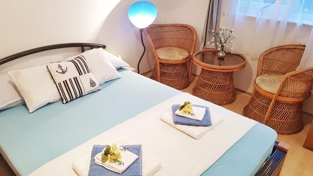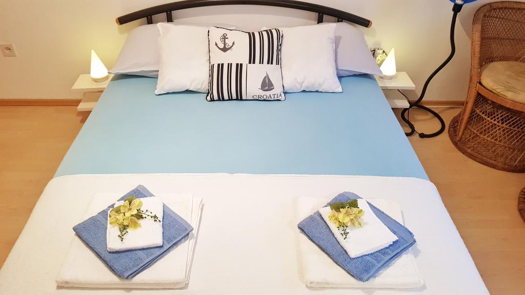 Great smjetsaj, great view from the balcony, very tidy apartments; very friendly hosts, unobtrusive, and very accessible to all the information. Peaceful area, parking right in front of the house, grocery store nearby, 15min walk to the center. Plaza at bay Pokonji down the beautiful, clean sea, with several restaurants, close to the path to the beach steep (great training), but has a way around to reach by car. Extremely satisfied.