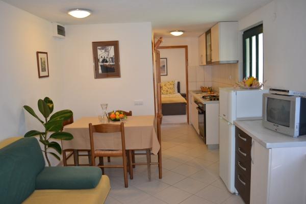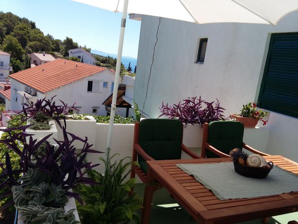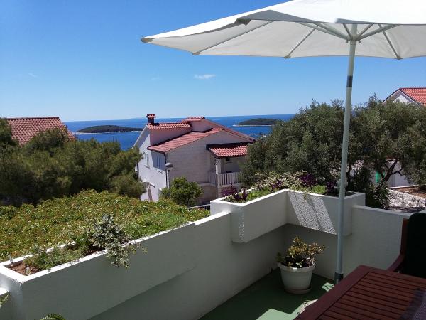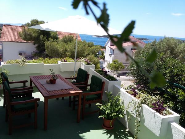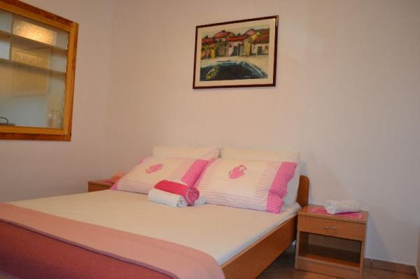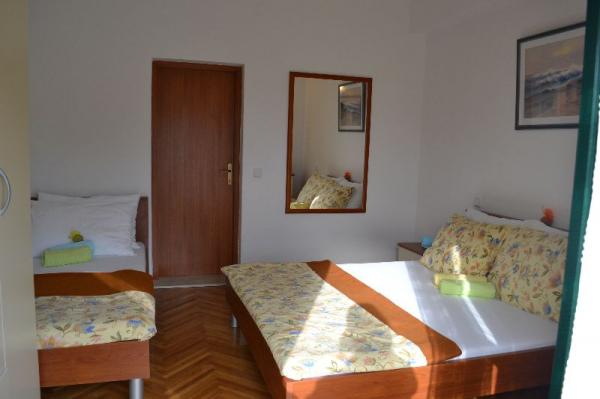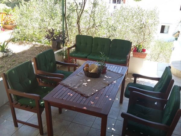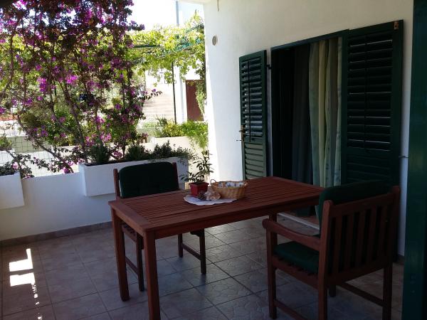 Very friendly hosts, always available, also with tips on what to see in the city, on the island, etc. We chose apartment 2 + 1 (ID 32367), which is located on the top floor and has a beautiful view of the sea and nearby islands. The lookout point is also arranged on the roof of the house. The apartment is quite bright, as it does not have shutters like the others in the house, but internal blinds, so for those who need darkness for a good night's sleep (but don't get up at dawn), I recommend a sleeping mask. The house is turned so that you have the morning / morning sun, which is great on hot days, when you can easily sit on the terrace all day. Air conditioning, parking, shop very close, various beaches accessible at a distance for dogs ...