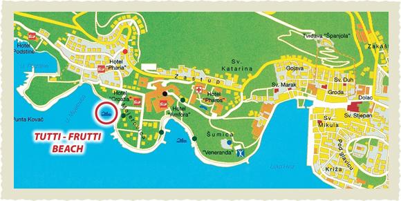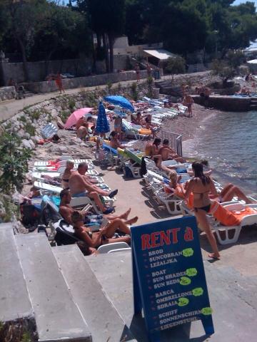 Only 10 minutes walking promenade of Hvar, is a beach Tutti Frutti is located in a quiet bay, concrete and rock approach, with sandy areas for children, with the possibility of renting boats, watercraft, beach umbrellas, deck chairs, and a rich selection of drinks and ice cream. Villa guests have a discount chairs.